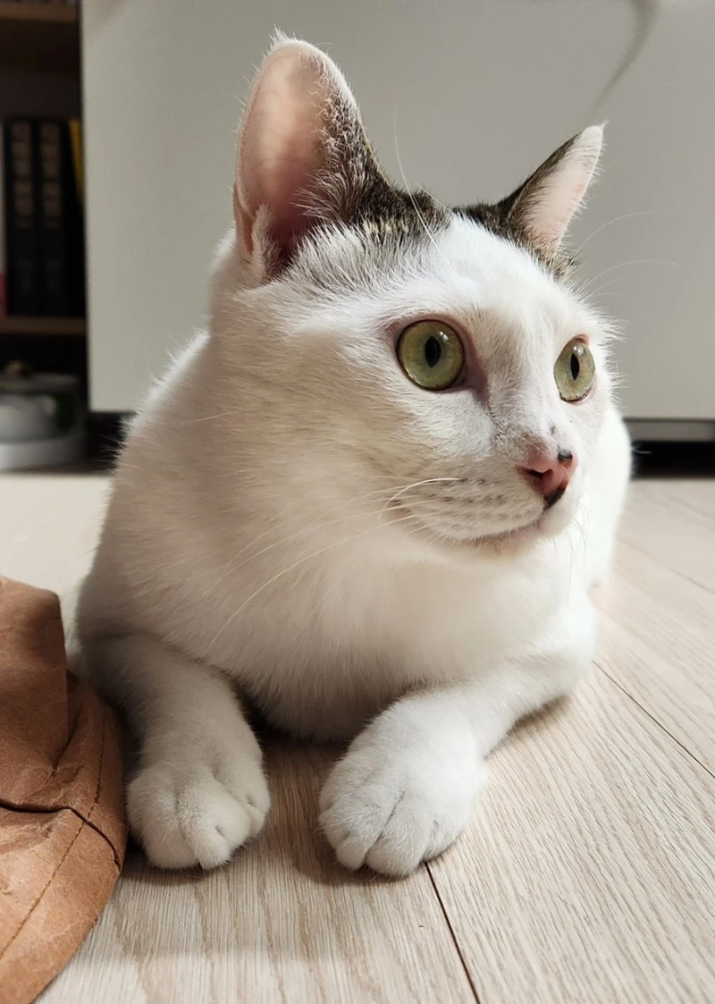 나는 길거리 캐스팅으로 집고양이가 된 여명이가 그래도 제법 용맹한 고양이일 거라고 생각했다. 그래봐야 두 달 정도긴 했지만 사람이 제법 많이 다니는 골목에서 살았기 때문에 어지간한 일에는 수염도 움찔하지 않는, 그런 배포가 큰 고양이일 거라고 어림짐작했다. 그렇지 않다는 걸 알기까지는 그렇게 오랜 시간이 걸리지 않았다. 여명이는 세상 둘도 없는 쫄보였고, 지금도 진행형이다. 길에 살았던 두 달 사이에 무슨 일이 있었던 건지, 극내향형 집사와 함께 살아서 다른 사람을 볼 일이 많지 않아서인지 여명이는 다른 사람의 소리만 들려도 긴장하는 편이다.