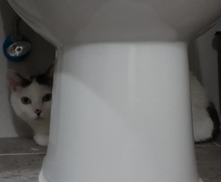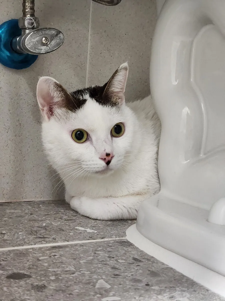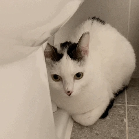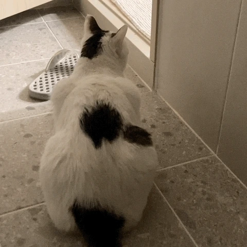 30분쯤 지나니까 이제 마음이 살짝 놓였는지 변기 뒤편에서 몸을 조금 꺼내기는 했는데 여전히 여명이는 많이 움직일 생각이 없어 보였다. 사람인 내가 듣기에도 쿵쿵 소리가 제법 컸으니 여명이한테는 오죽할까 싶어서 일단은 무리하게 데리고 나오지 않고 그냥 둬봤다. 언젠가는 나오겠지.