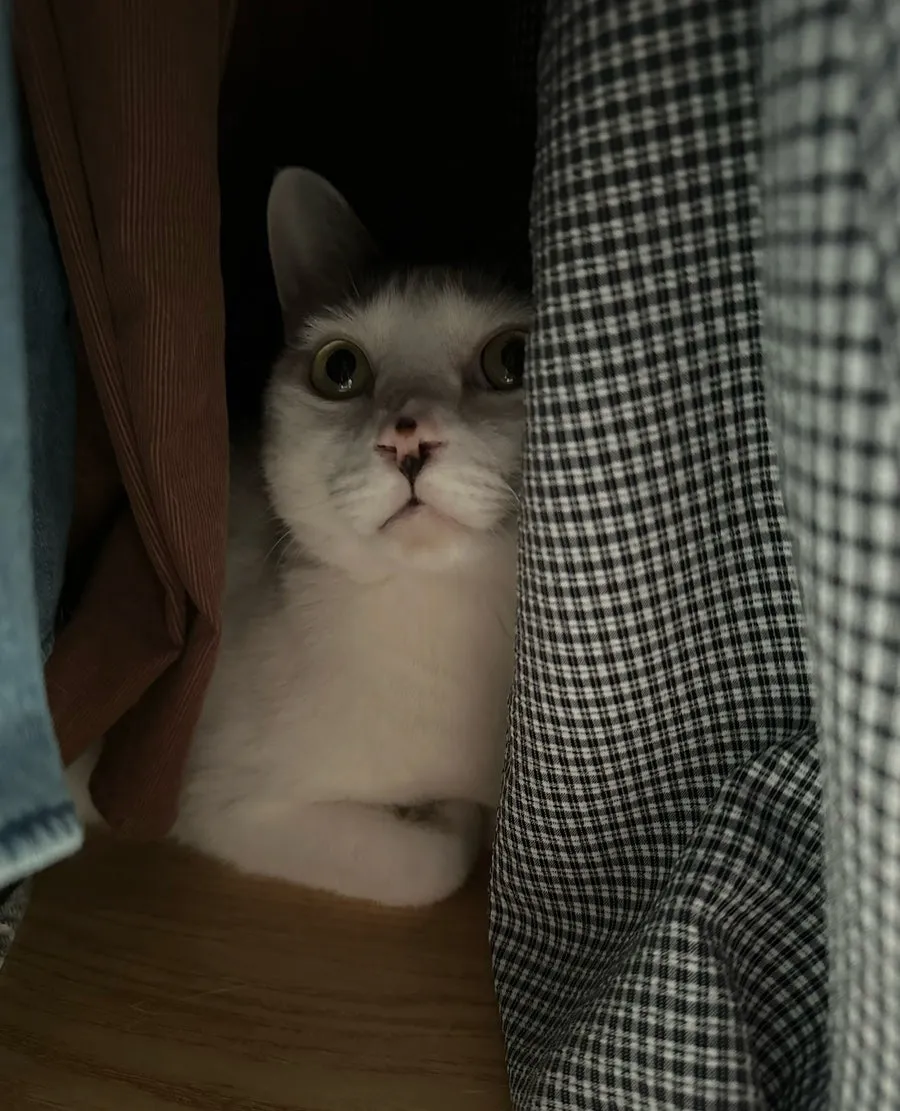 10월 어느 날 주말 외출을 마치고 집에 돌아오는데 불꽃축제를 하는지 폭죽 터지는 소리가 건물 근처에서부터 꽤 크게 들렸다. 집에 혼자 있는 쫄보 고양이가 괜찮을까 걱정하면서 서둘러 현관문을 열었더니 아니나 다를까 어디에 꼭꼭 숨었는지 늘 나오던 마중을 안 나왔다. 자주 숨는 공간들을 하나씩 찾아봤는데도 코빼기도 안 보여서 얘가 도대체 어딜 갔나 슬슬 초조해하던 중에 어디선가 고양이 우는 소리가 아주 약하게 들렸다.