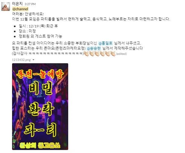 L: 그쵸. 한번 밀리면 두번 밀리고, 하루 밀리는거 금방이거든요. 슬랙으로든 구두로든 생각나는거 바로 말하면 쓸데 없는 고민하는데 시간을 쓰지 않아도 되는 것 같아요.