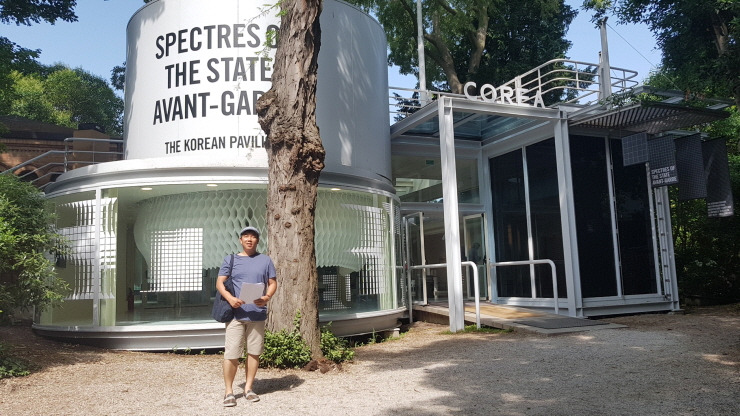 작년(2018년 6월 3일), 베네치아 비엔날레 전시 때 한국관 앞에서 아내가 찍어준 사진La Biennale di Venezia 2019