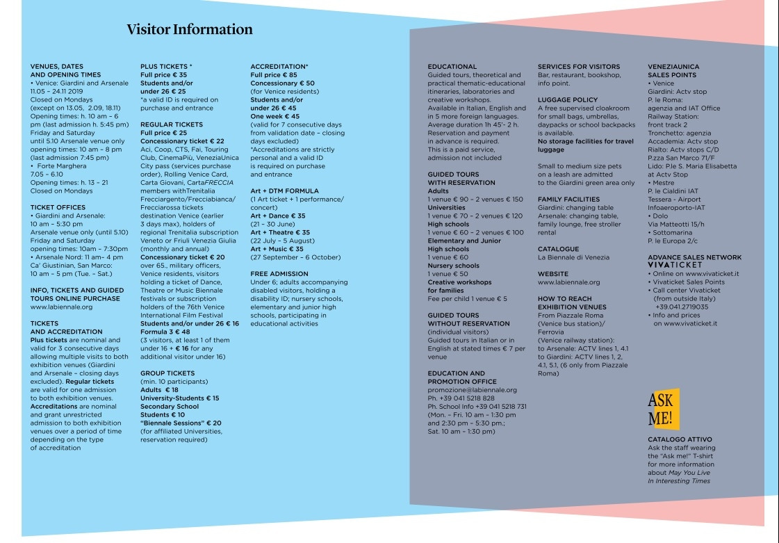 티켓 관련된 정보현대예술계의 올림픽이라 불리우는 베네치아 비엔날레. 뜬금없지만, 자르디니에 영구관을 갖고 있는 우리나라가 자랑스럽다. 올해에는 어떤 작품들이 우리를 기다리고 있을지 기대된다. 그럼. 이제 만나러 가볼까?