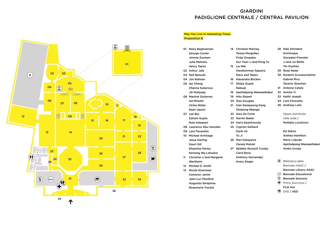 베네치아 지도에 표기 된 비엔날레 작품 전시 장소 (공식 홈페이지에서 다운로드 받을 수 있다.)La Biennale di Venezia 2019