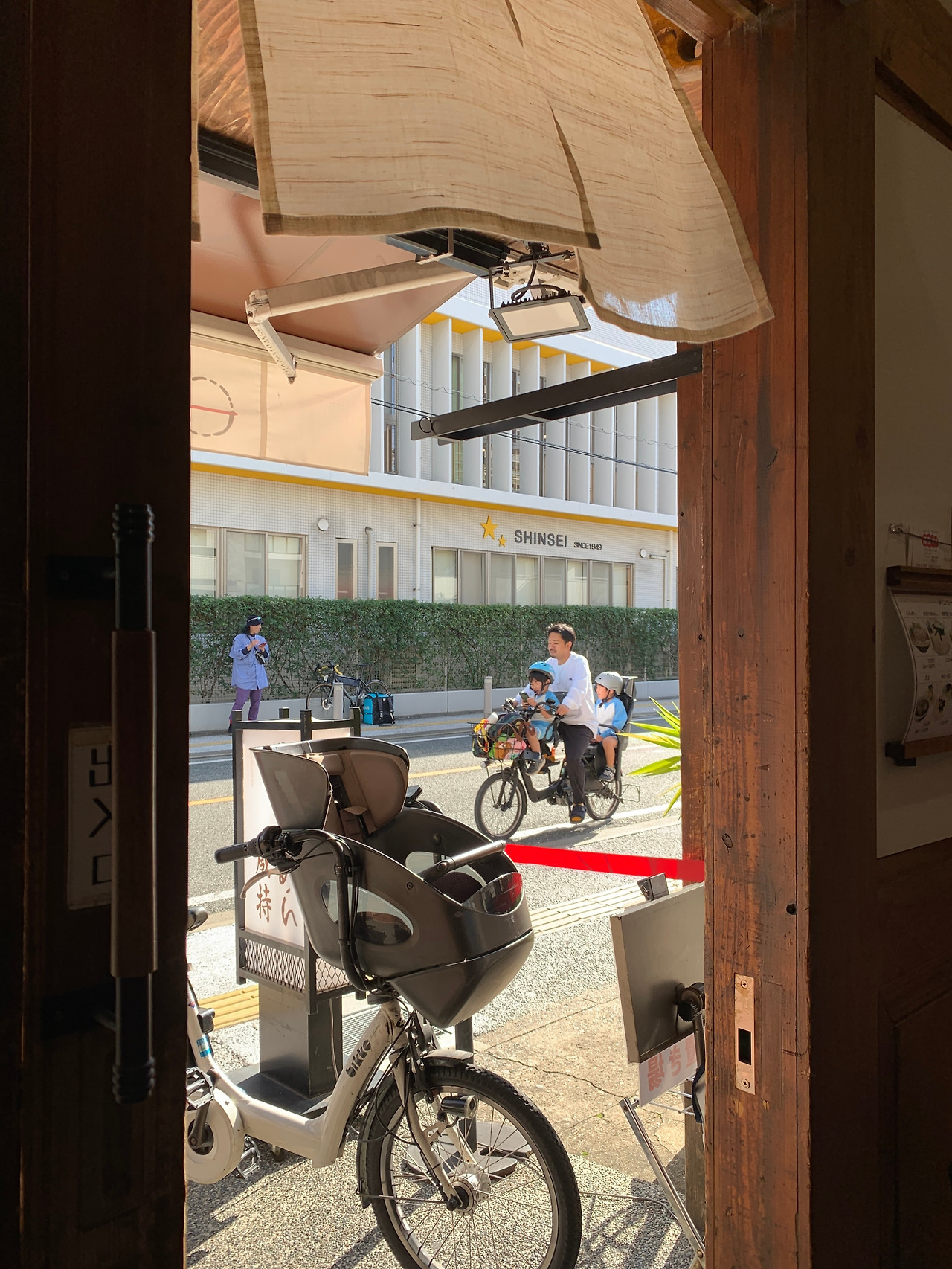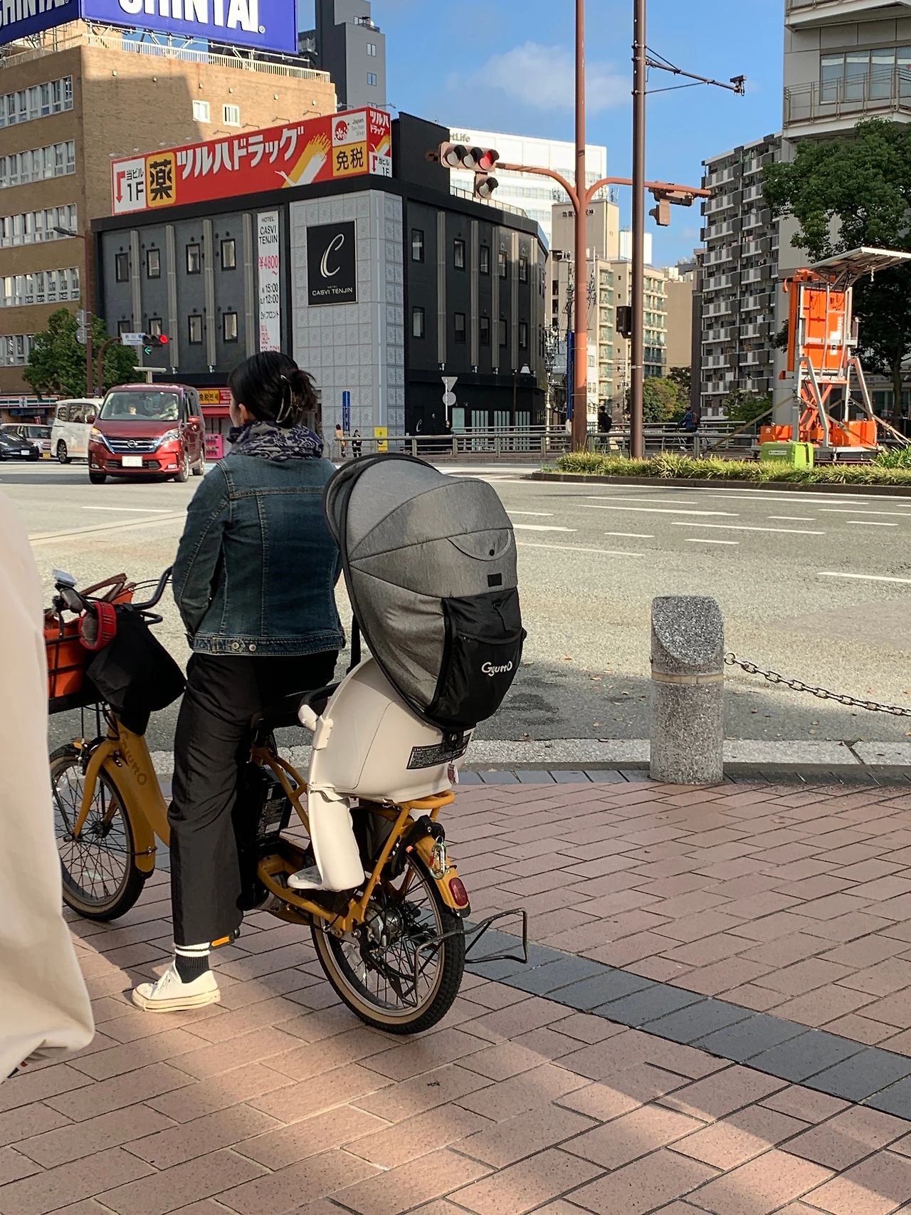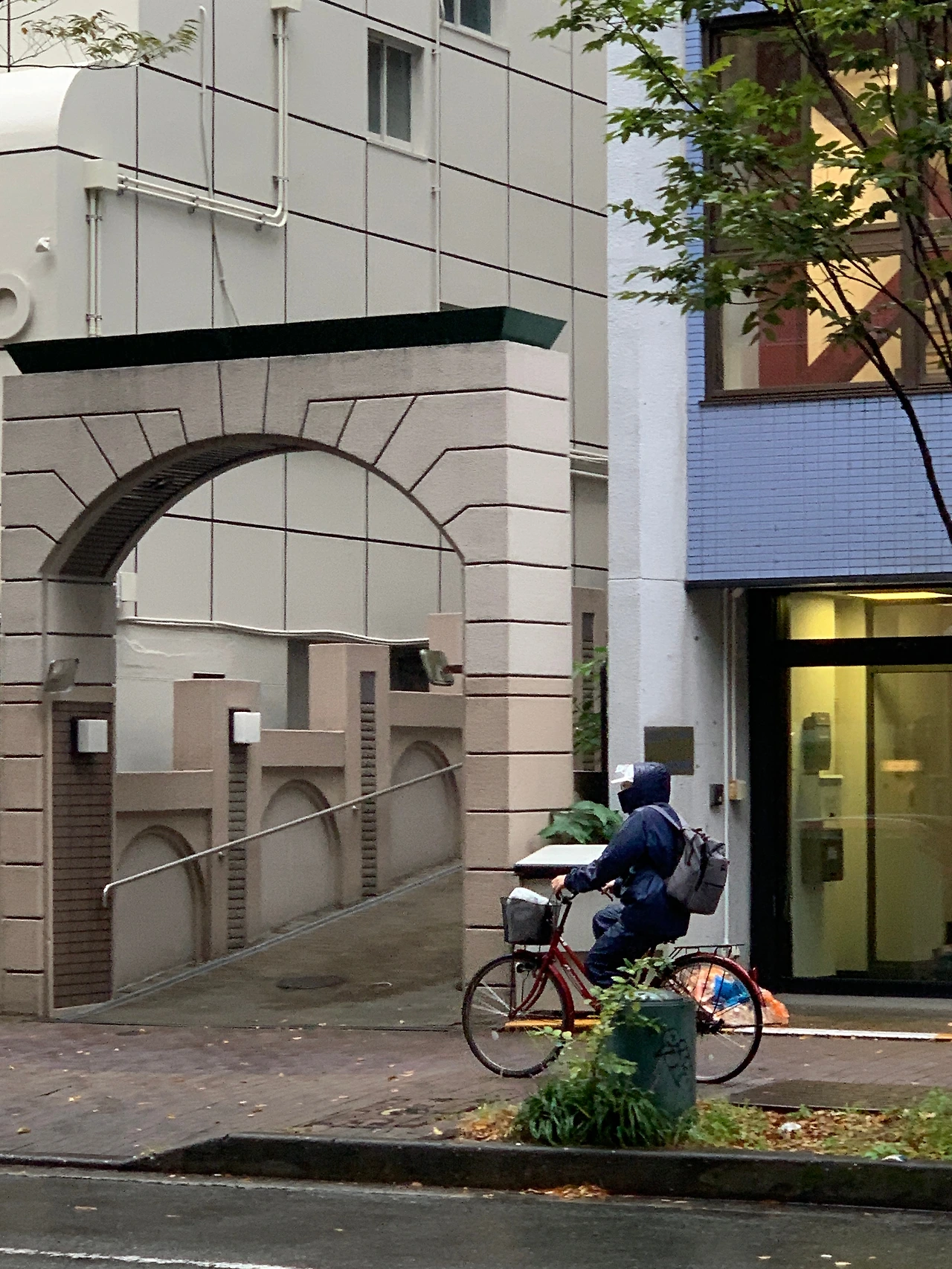 점심시간이 되어 비는 점점 더 내리기 시작해 멈출 기미를 보이지 않는다. 자전거를 반납하고 길을 걸으며 지나가는 사람들을 구경했다. 비가 와도 사람들은 아랑곳하지 않고 자전거를 탄다. 이것이 일본의 자전거 라이프인가. 후드 뒤집어쓰고, 어디서 났는지 우비도 걸치고 빗길을 쓱쓱 잘도 지나간다. 비가 와도 아이와 함께 자전거를 타는 모습도 신선하다. 비 맞으면 큰일이라도 나는 것처럼 극도의 염려를 하는 우리네 정서와는 사뭇 다른 느낌이다. 물론 비가 더 짙어질까 서둘러 가는 듯해 보였지만.