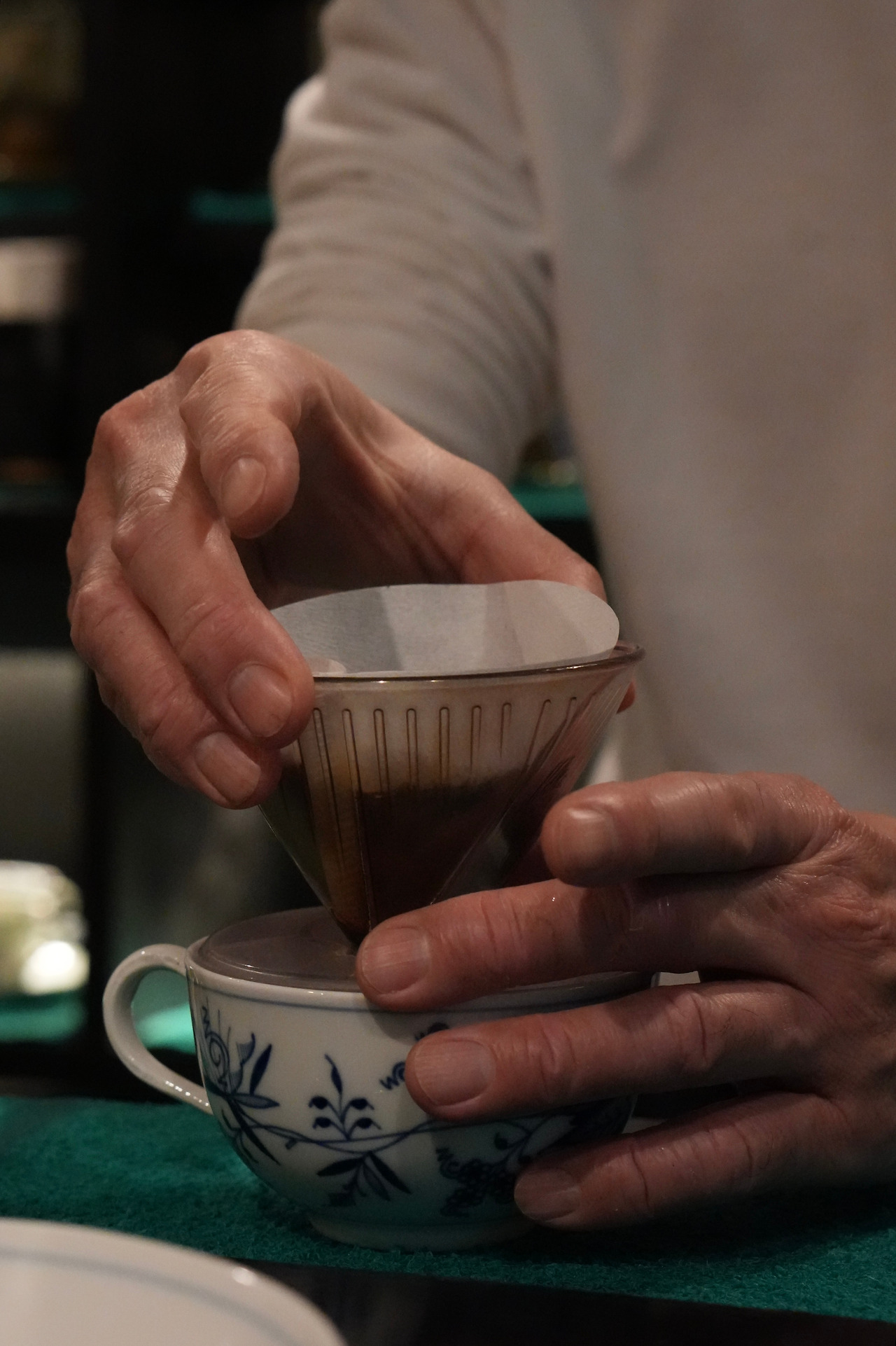 일본 커피마스터분들이 내려주시는 커피의 농도와 로스팅은 진한 경우가 많아 주문할 때 밝고 가벼운 원두로 추천받았다. 메뉴는 일본어로 되어있어 보기가 어려웠지만 친절한 안내 덕분에 코스타리카 원두로 따뜻하게 한 잔 주문했다. 커피를 주문할 때 잔도 함께 고르는 기회를 주신다. 이 또한 색다른 경험이다. 어떤 잔에 마셔야 기분이 좋을까 한참을 고민했으나 결국은 깔끔한 잔으로 고른다. 다음엔 꼭 화려한 잔에 마셔볼 테야 다짐해 보지만 그때가 되어도 또다시 비슷한 선택을 할 듯.