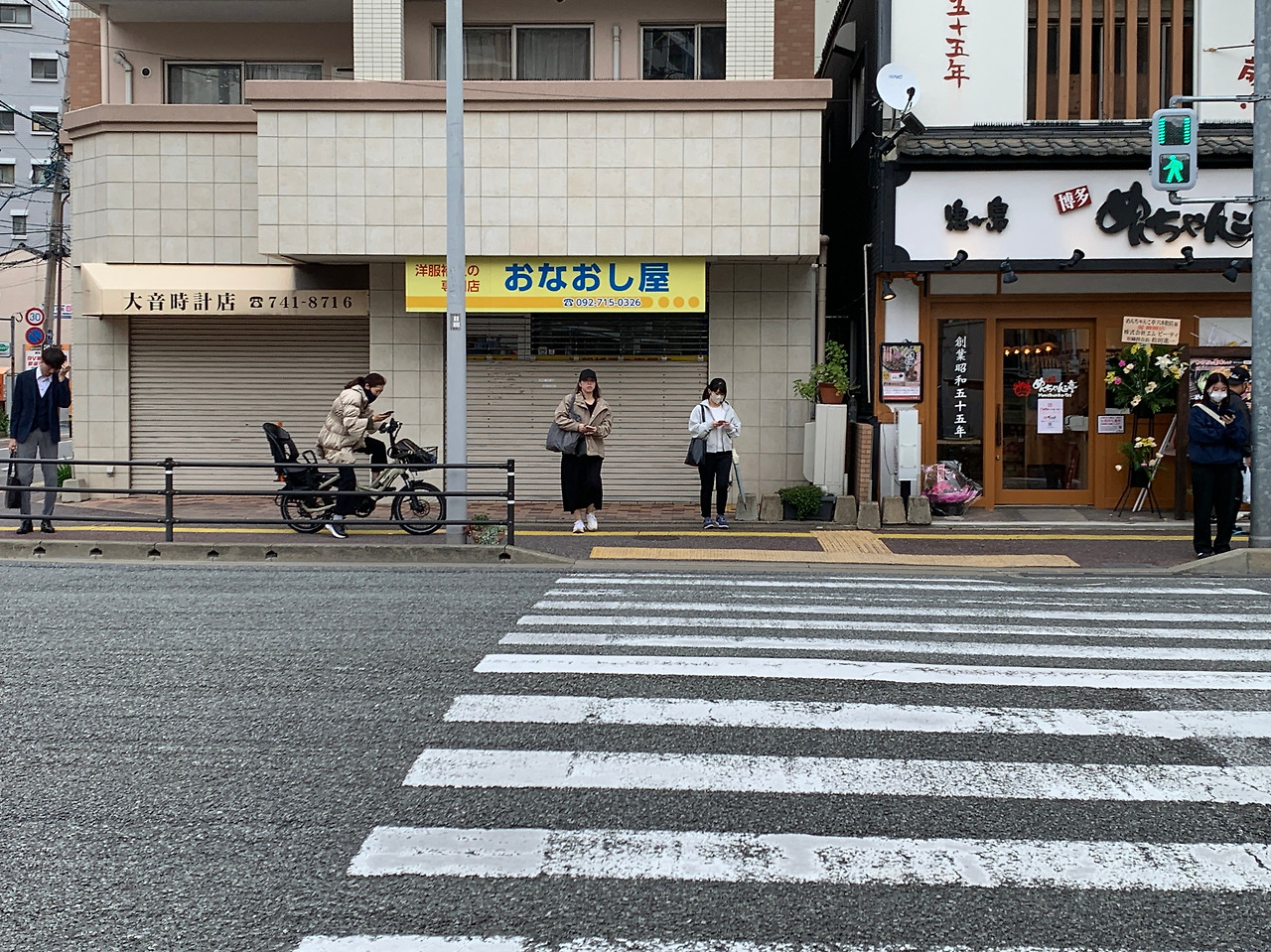 한국으로 돌아가는 날인 아침, 오후 비행기라 텐진에 있는 블루보틀에서 브런치를 먹고 공항으로 출발하기로 했다. 평일 아침 출근하는 모습은 일본도 한국과 별반 다를 게 없다. 출근하는 사람들 사이를 걸어 카페로 가는 기분 또한 괜히 신난다.