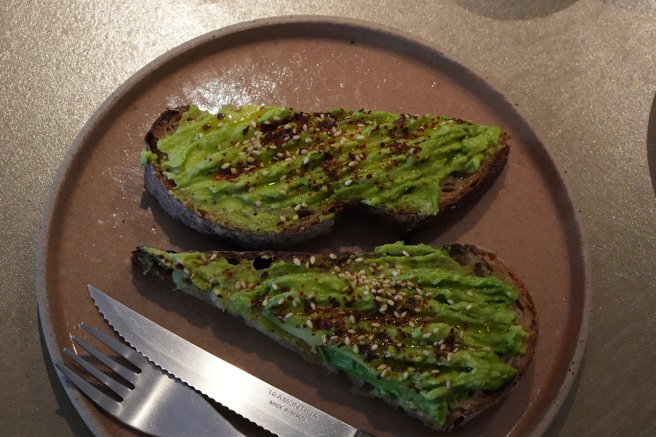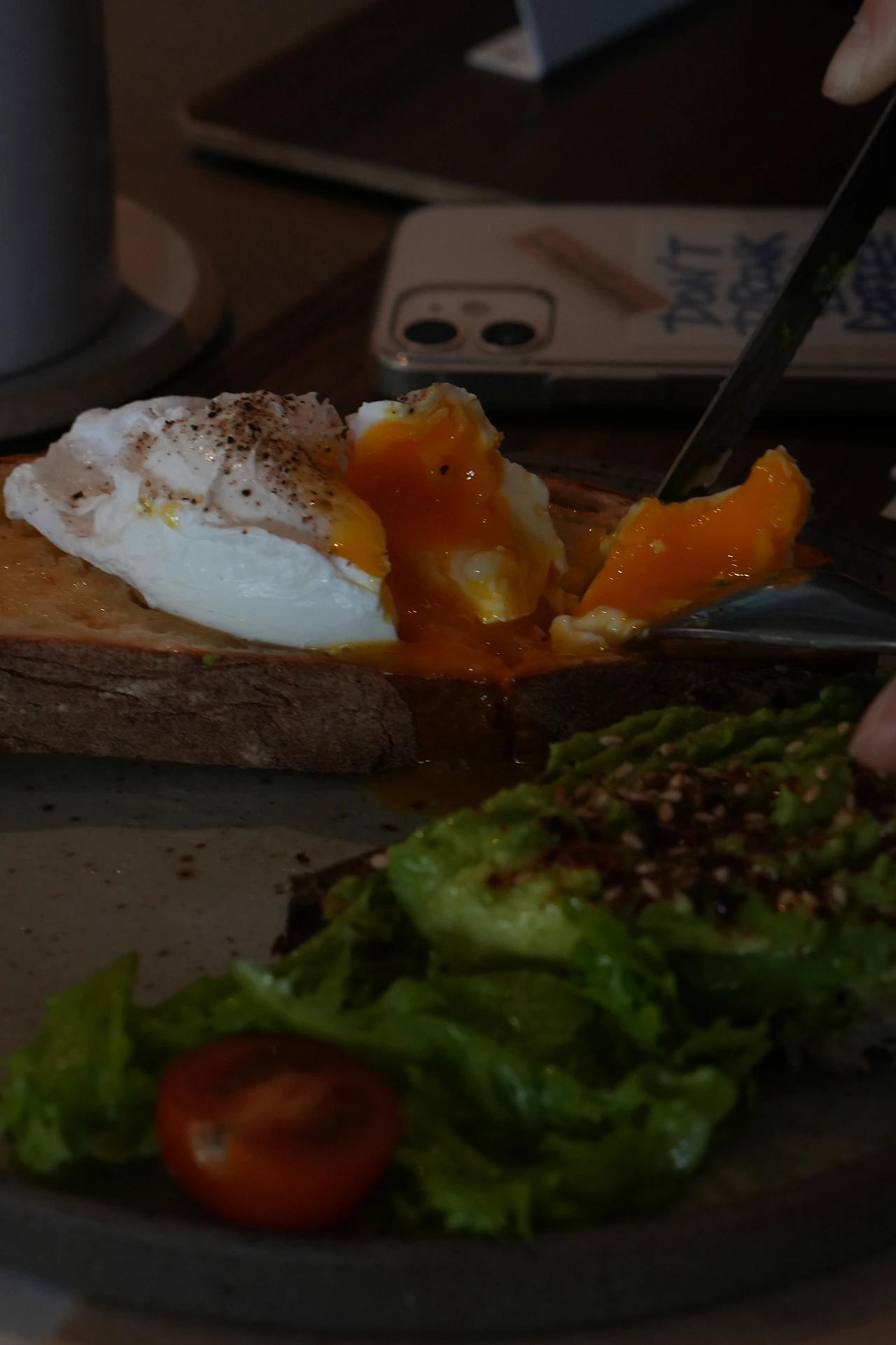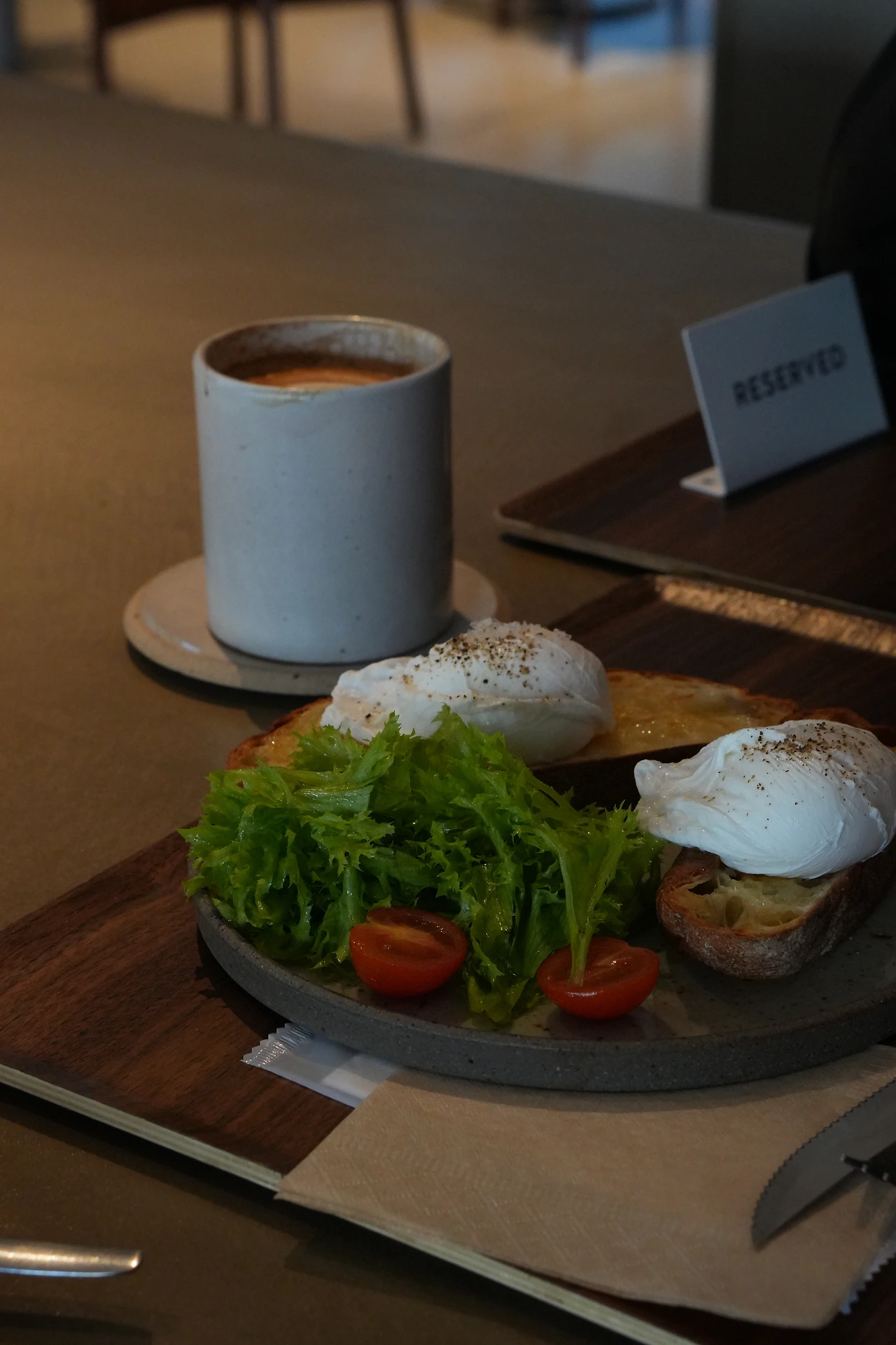 스매쉬드 아보카도와 치즈케이크, 수란은 얹은 토스트, 그리고 든든하게 우리의 배를 채워줄 라테.