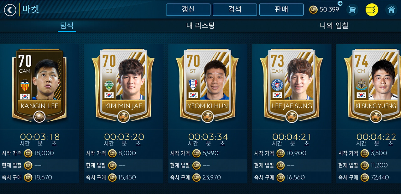 출처: FIFA모바일 게임 캡쳐축구 게임도 깔았다. 흥미 유발 학습법. 사람들이 K리그를 무시하는 이유도 이 때 어렴풋이 알았다. K리그 선수들은 스탯이 낮았다. 보통 60점대, 아무리 잘 하는 선수도 70점대다. 그런데 영국의 프리미어 리거들은 기본적으로 86부터 시작하더라고.