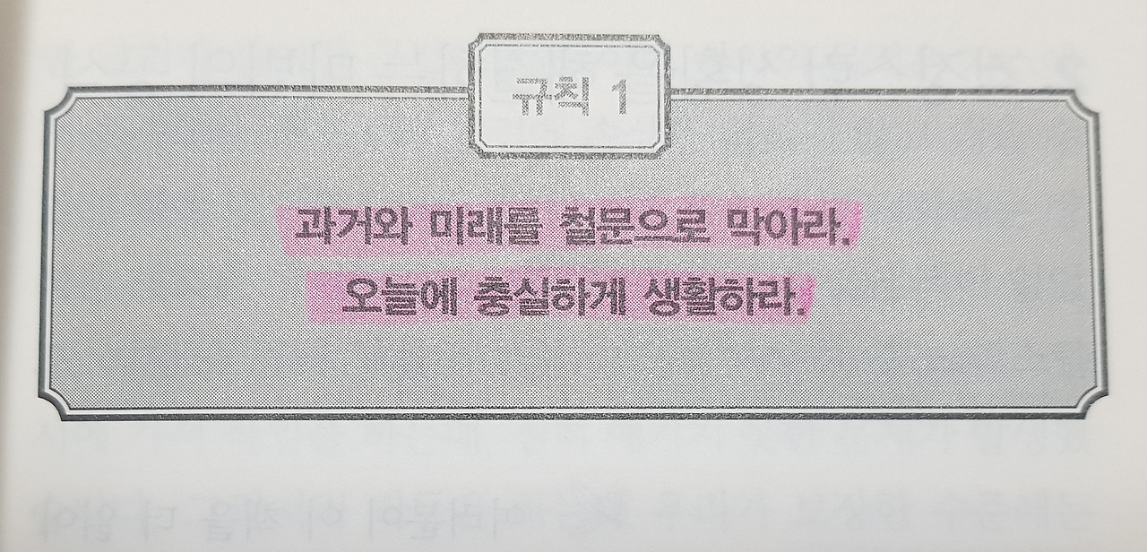 데일 카네기의 <인간 관계론>에서도 걱정을 안 하고 살려면 어제는 ‘철문’으로 닫아버리고 오늘을 살아야 한다고 한다. 누구에게나 기나긴 인생은 막막하지만 어제와 내일을 닫아 둔 오늘 24시간은 버틸 만하니까.