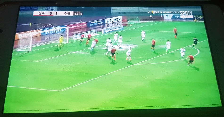 그리고 주말에도 비가 왔다. 우리 수원은 상주와의 원정 경기였다. 상주에는 비가 꽤 온 모양이었다. 난 또 한발 늦었다. 전반 5분 쯤에 한석희의 데뷔골이 들어갔다고 한다. 1:0인 상에서 뒤늦게 중계화면을 틀었다.