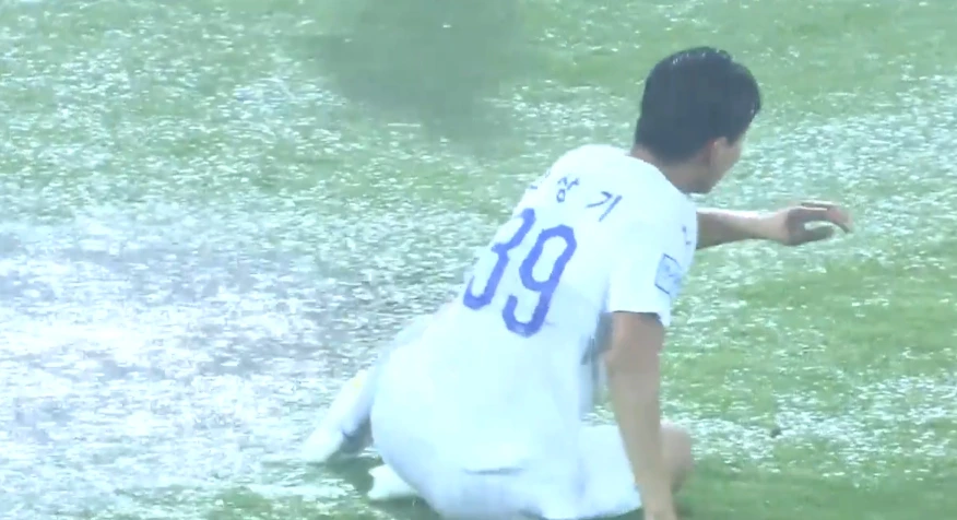이 무슨... 축구에 빠진지 1년 남짓인 나로서는 실로 진풍경이었다. 워터파크 아닌가요. 도대체 물이 얼마나 고여 있길래 저런 장면이 펼쳐지냐는 말이다. 믿을 수가 없는 홍수 경기장. 그라운드가 전체적으로 물바닥이었다. 선수들이 밟는 모든 곳이 첨벙댔다. 정도의 차이만 있을 뿐.