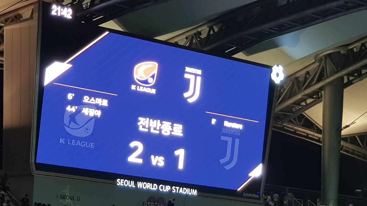 생각보다 경기는 비등했다. 유벤투스가 잘 하는 팀이라서도 그렇지만 K리그 올스타 선수들은 처음 호흡을 맞추는 거라잘 안 맞을 것이라고 생각했다. 그런데 웬걸, 전반 몇 분만에 FC서울에서 뛰고 있는 오스마르가 골을 넣은 게 아닌가! 관중들의 기대감이 확 올라왔다.