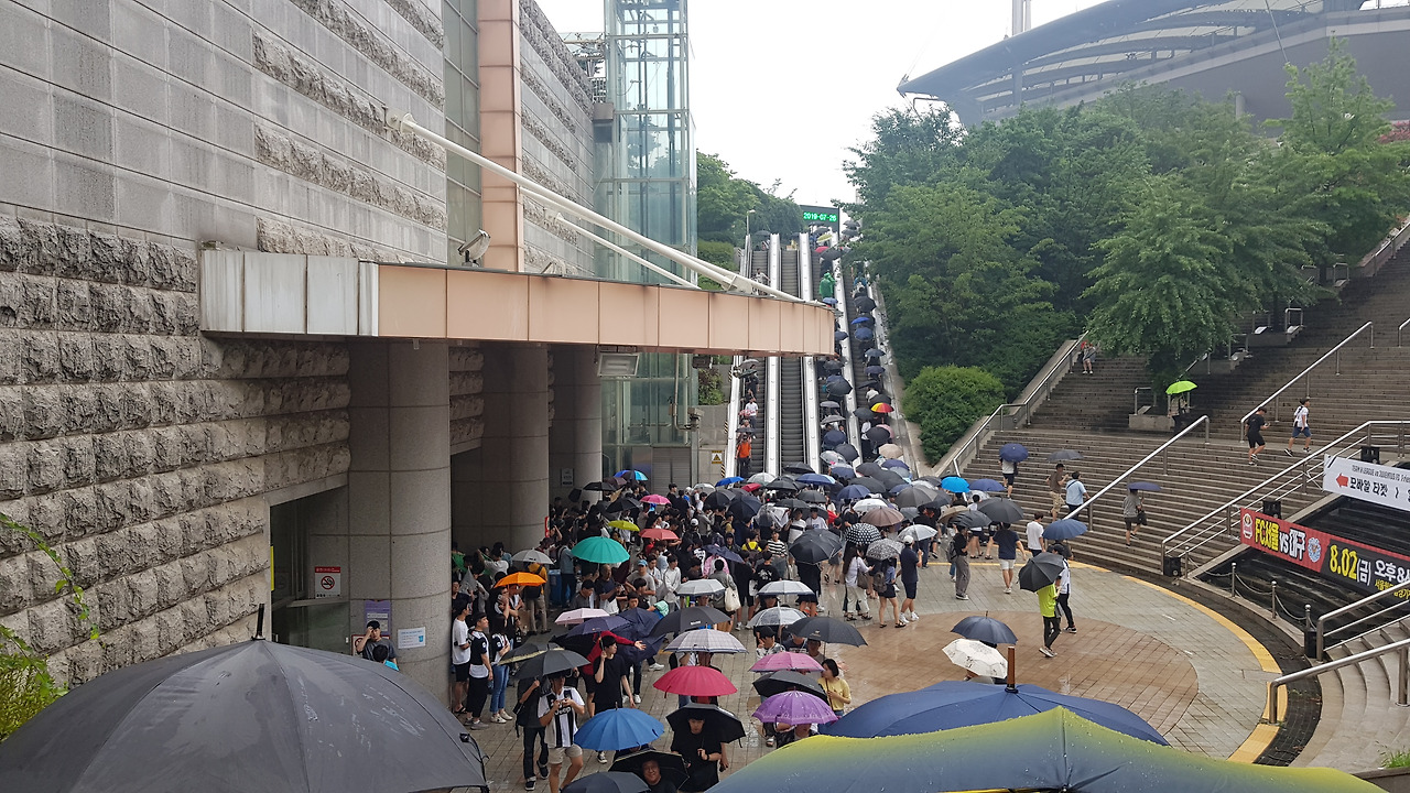 8시가 넘어갔다. 사람이 너무 많아 인터넷이 잘 안 됐다. 겨우 겨우 검색해봤더니 태풍으로 비행기가 지연되어 유벤투스가 4시 반에나 공항에 도착했다는 것 아닌가. 그래서 컨디션 조절을 위해 팬 사인회에 호날두가 안 나왔다고. 그리고 6시 반에 서울로 출발한다고.