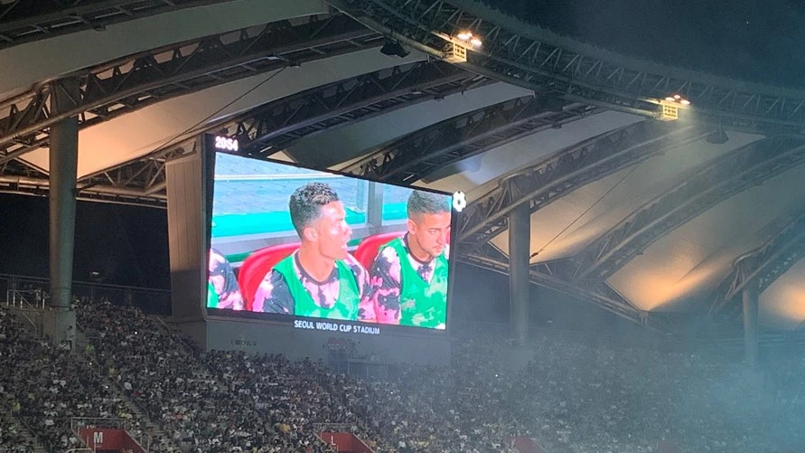 후반이 시작됐다. 그런데도 호날두는 벤치에 앉아 요지부동이었다. 호날두를 카메라에 비춰줄 때마다 우리나라 관중들은 천진난만한 팬심으로 '우와!!!'를 외쳤다.