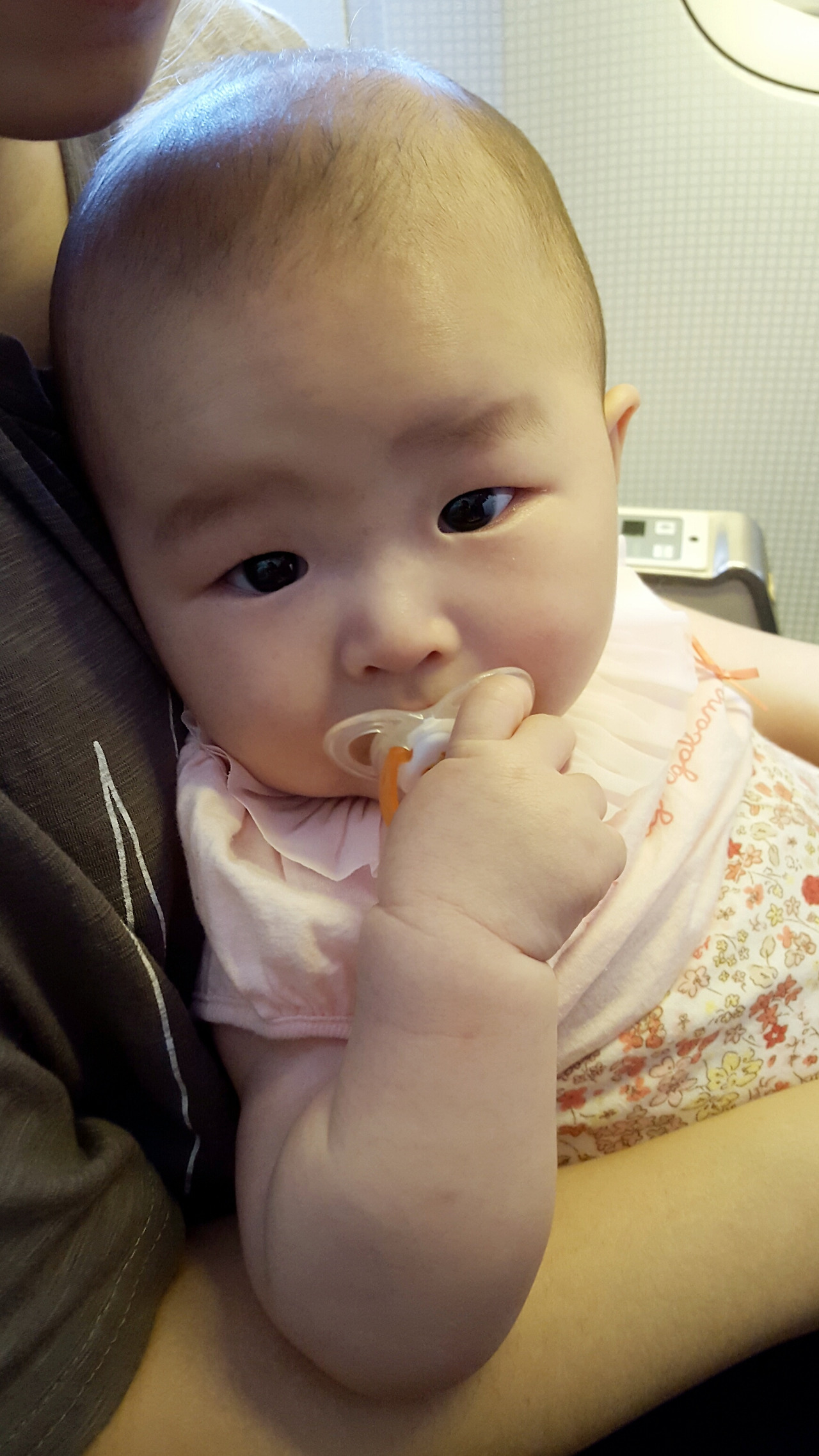어쨌거나 너무나도 수월하게 제주도에 도착했다. 옆을 보니 쪽쪽이를 빨면서 신기하다는 듯이 엄마 품에 안겨있는 수인이가 보였다. 어이구 예쁜 것!