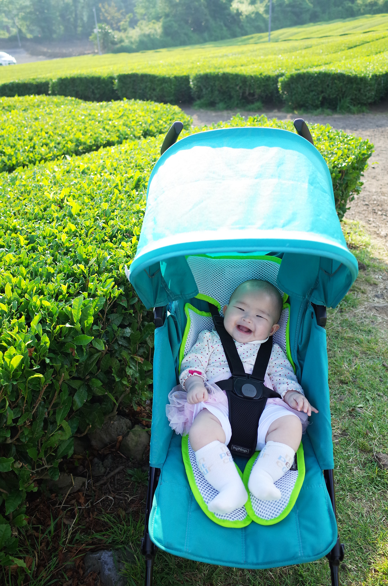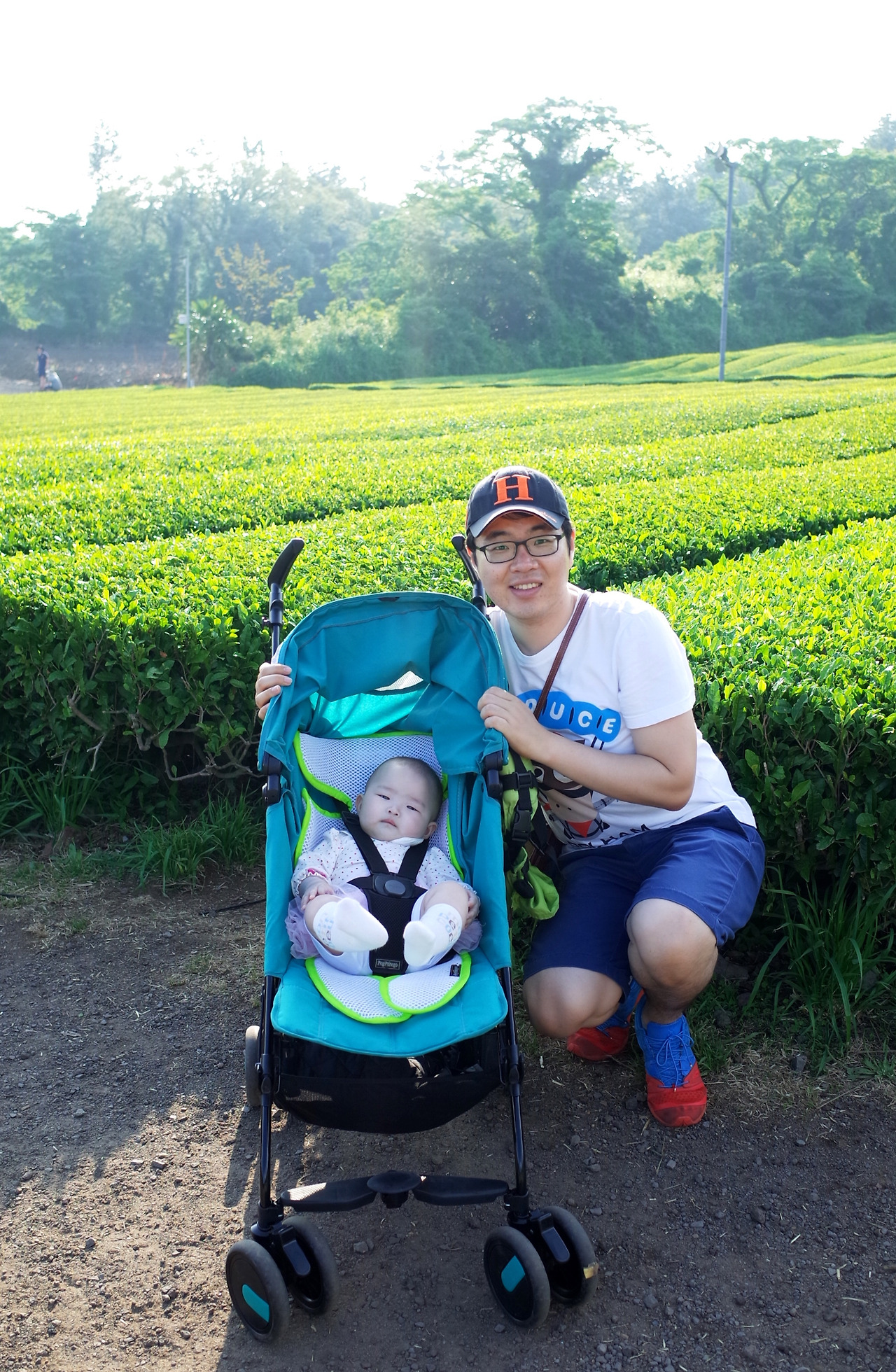 오늘의 화룡점정은 완벽한 날씨. 덕분에 파란 하늘과 초록의 녹차밭의 조화가 눈이 부시다. 윈도우 배경화면 속으로 들어온 줄? 시원한 곳에서 녹차와 아이스크림을 먹다가, 밖에 나와서 산책하고, 녹차밭에 가서 수인이와 함께 사진도 찍고. 신선놀음도 이런 신선놀음이 없네. 이 맛있는 것을 아빠와 엄마만 먹고 있으니 그게 또 미안하긴 하더라. 어차피 못 먹을 것이지만 그렇다 하더라도 왠지 미안한 마음을 감출 수 없는 것을 보니 나도 아빠가 됐나보다. 부디 수인이가 사랑을 듬뿍 받고 자라서 안정적인 아이로 커 나가길. 옆에서 손가락 장난감에 빠져있는 수인이 머리를 한 번 쓰다듬어 주었다.