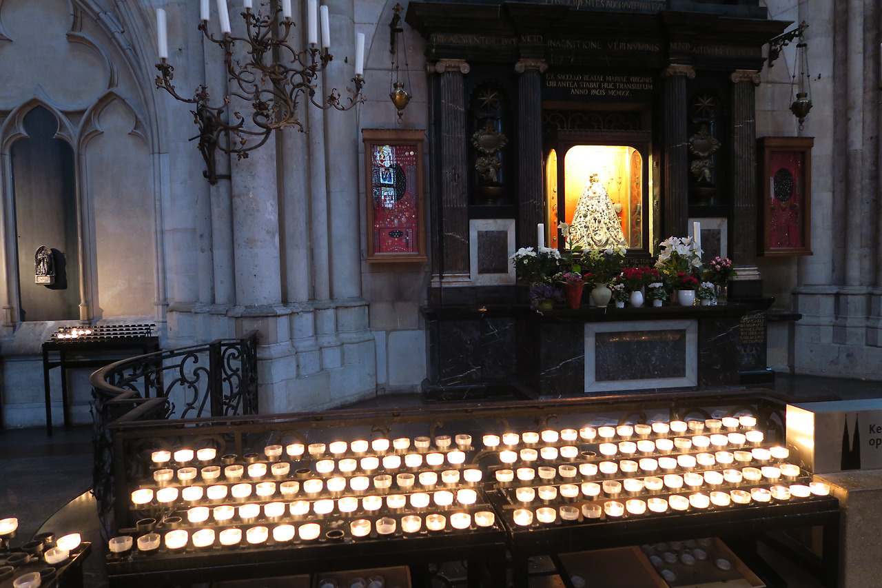 쾰른에서 돔(대성당)을 찾는 건 어렵지 않다. 중앙역에 내리자 마자 바로 눈 앞에 돔이 나타난다. 보는 순간 그 규모와 고딕 첨탑에 압도되었다. 이전에 본 기억은 아무 소용이 없었다. 마치 새로 본 것처럼 감탄했다. 종교가 없는 내가 이정도니 카톨릭 신자인 아내는 오죽했으랴. 이번 독일 여행에서 두 번째로 충격을 받은 듯한 모습이었다. 노이슈반슈타인 성 뒤로 마리엔 다리를 보러 올라가다가 본 경치가 첫 번째, 그리고 쾰른이 두 번째.