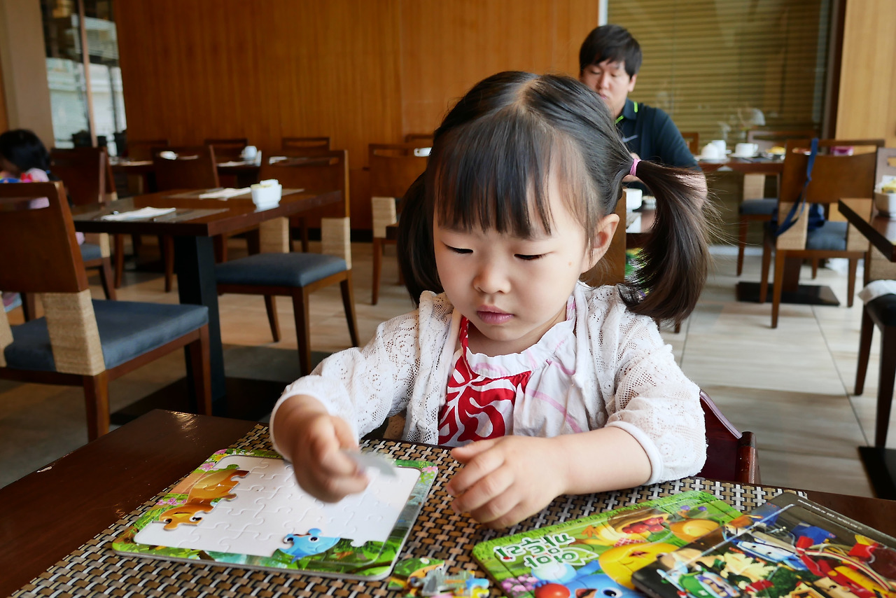 물론 우리 딸이 잘 협조한 덕분이다. 건강하고, 잘 먹고, 잘 자주니 얼마나 예쁜지. 요즘은 퍼즐, 특히 <엄마 까투리> 퍼즐에 꽂혀있는 덕분에 식당에 가서도 전처럼 태블릿 많이 보지 않아서 더 기특한 우리 딸. 처음에 잘 못하던 퍼즐을 척척 해나가는 걸 보면 신기할 따름이다. 애들의 학습 능력이란. 어느새 이렇게 많이 컸니. 한국에서의 일상보다 여행을 떠나오니 그걸 더 크게 느끼게 된다. 아무래도 이전 여행의 기억들과 비교를 하게 되니까 그런가 보다.