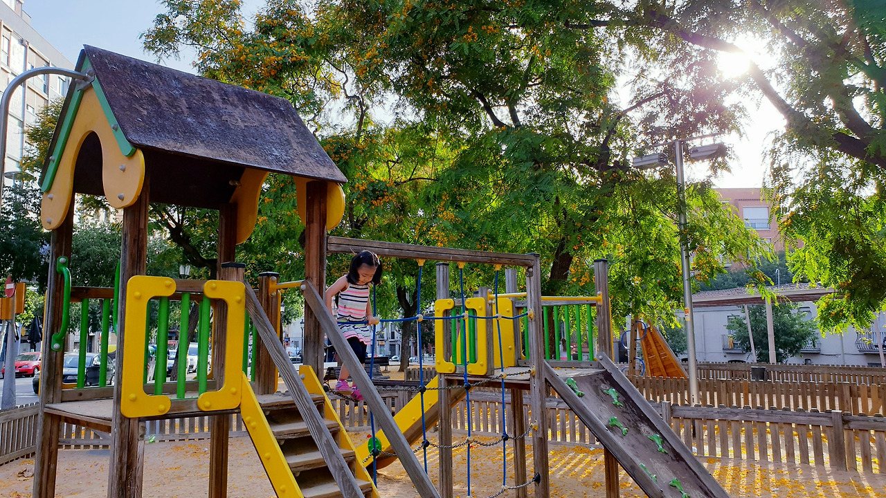 마땅히 할 것도 없던 참에 어제 물을 사 오다가 집 바로 앞에 있는 놀이터를 발견한 것이 기억났다. 아내가 원영이 분유도 먹이고 이것저것 하는 동안 나랑 수인이는 놀이터로 향했다. 이로써 바르셀로나의 첫 일정은 놀이터가 된 것이다. 아이와 함께 하지 않으면 상상도 할 수 없는 그런 일정이다만 이제는 익숙하다. 세계 어디를 가나 수인이가 가장 좋아하는 곳은 그 어느 곳보다 바로 놀이터니까.