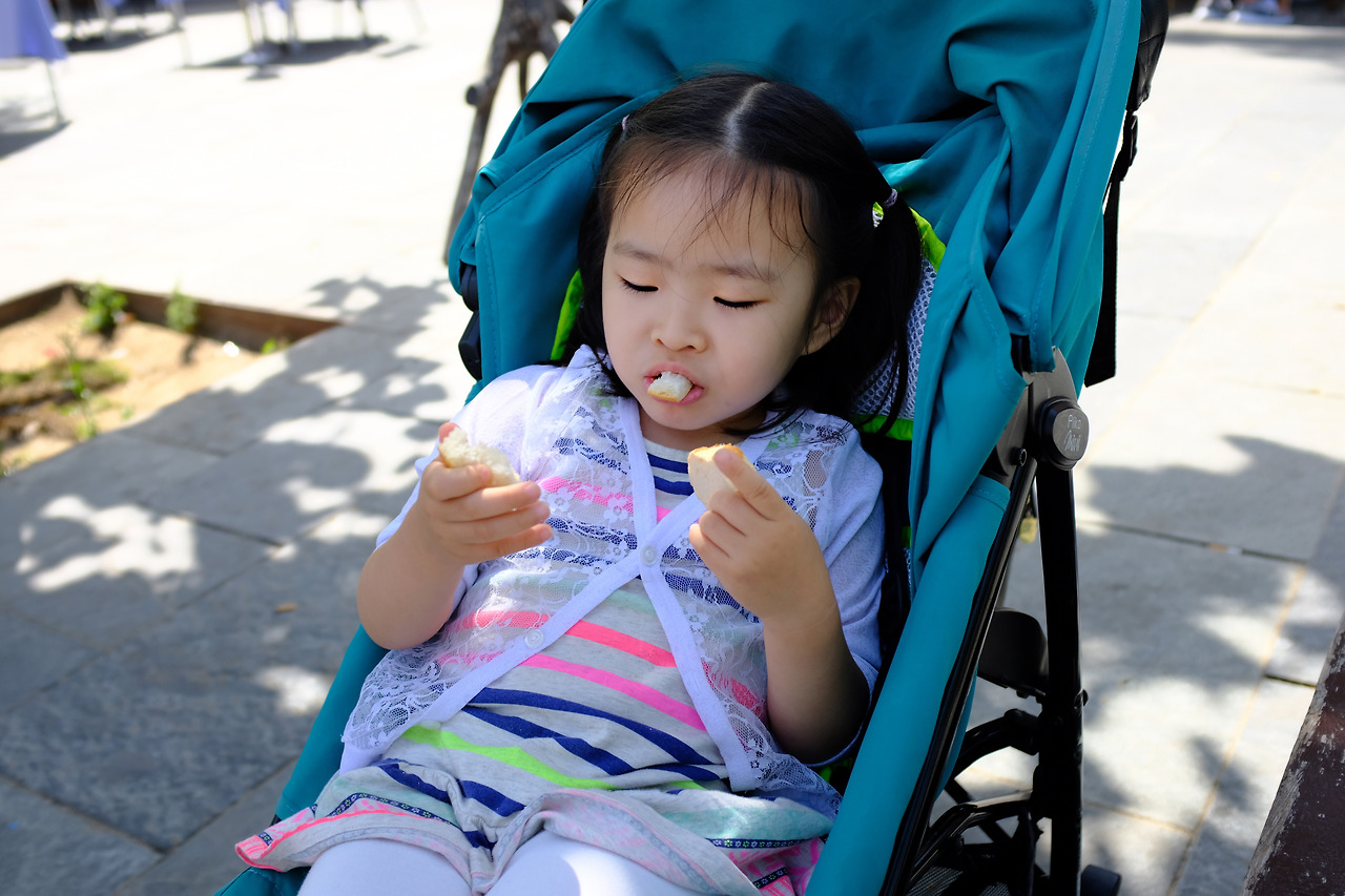 원영이는 밖에 나오는 걸 좋아하는 게 확실하다. 실내에 들어가면 칭얼대는데 밖에 나오면 곧 얌전한 걸 보면. 얘도 여행 체질인가. 방긋방긋 웃으며 잘 있는 걸 보면 컨디션이 좋은가 보다. 무슨 생각을 할까? 아니, 여기가 서울이 아니라 다른 곳이라는 걸 알기는 할까? 독일 때 어땠는지 수인이에게 물어보면 전혀 기억을 못 한다. 참 궁금한 아이들의 생각. 아빠 엄마 때문에 고생하는 것 같아 미안하다가도 이렇게 잘 노는 걸 보면 안심이 된다. 그래, 너도 즐겁겠지 뭐. 그렇게 믿고 남은 기간 동안에도 열심히 돌아다녀 보자꾸나.