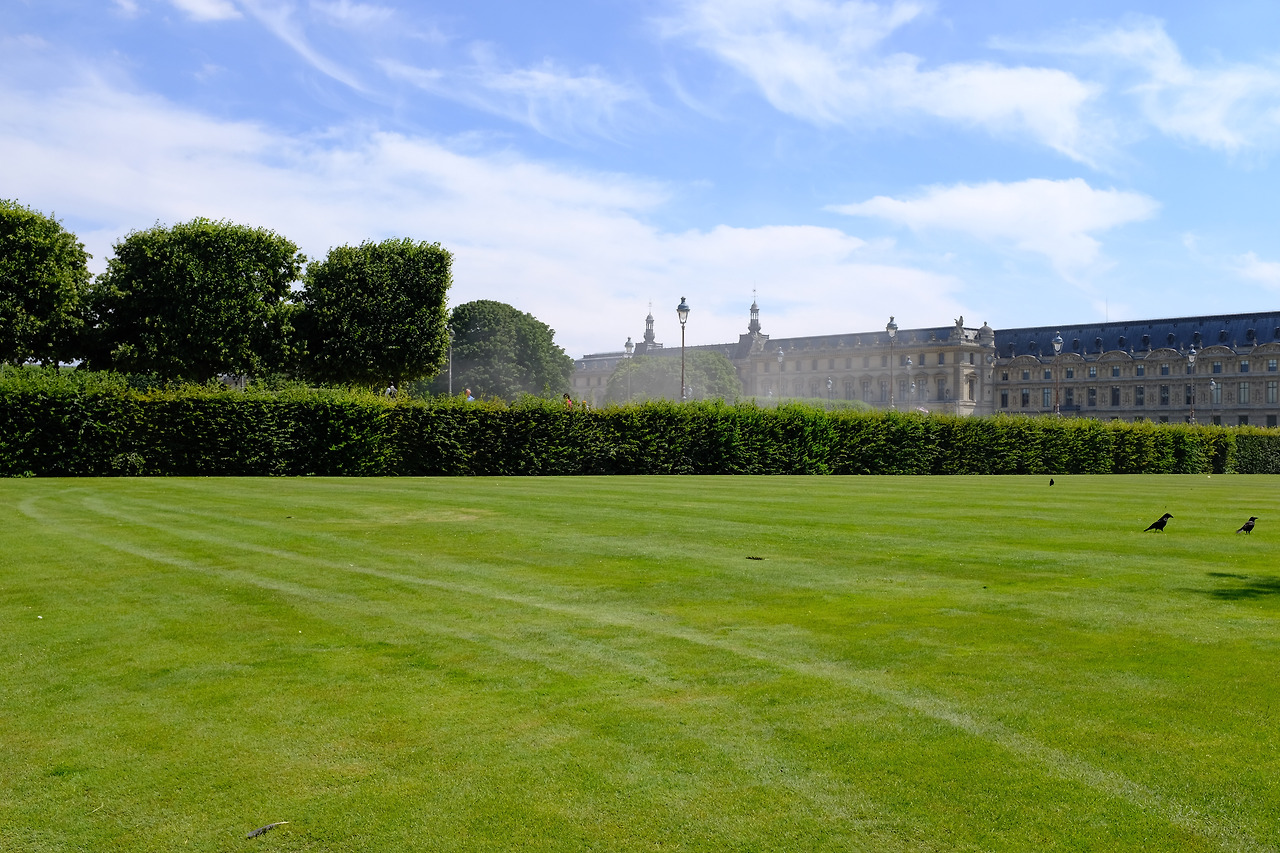 결국 튈르리 정원에 와서 그늘을 찾아 한참 동안이나 쉬었다. 겨울에 왔을 때는 여기가 상당히 황량했던 기억이 있는데 여름에 오니 완전히 다른 곳이 되어 있었다. 여기저기 싱그럽고 기분 좋은 녹색 천지에, 뜨거운 태양을 피해 그늘마다 사람들이 옹기종기 모여서 쉬고 있었고, 더할 나위 없이 깨끗한 하늘이 그 기분을 한층 더 좋게 만들어줬다. 말 그대로 여름의 튈르리 정원은 눈이 부셨다. 이런 곳에서는 많이 쉬어야 한다. 기온은 20도 중반 정도지만 날씨가 워낙 맑아서 햇빛이 뜨겁다 보니 아이들도 더웠는지 시원한 곳에 오니까 표정이 굉장히 밝아졌다. 그래, 이런 날에 걸으니 얼마나 힘들었을까. 고생이다 우리 아이들.