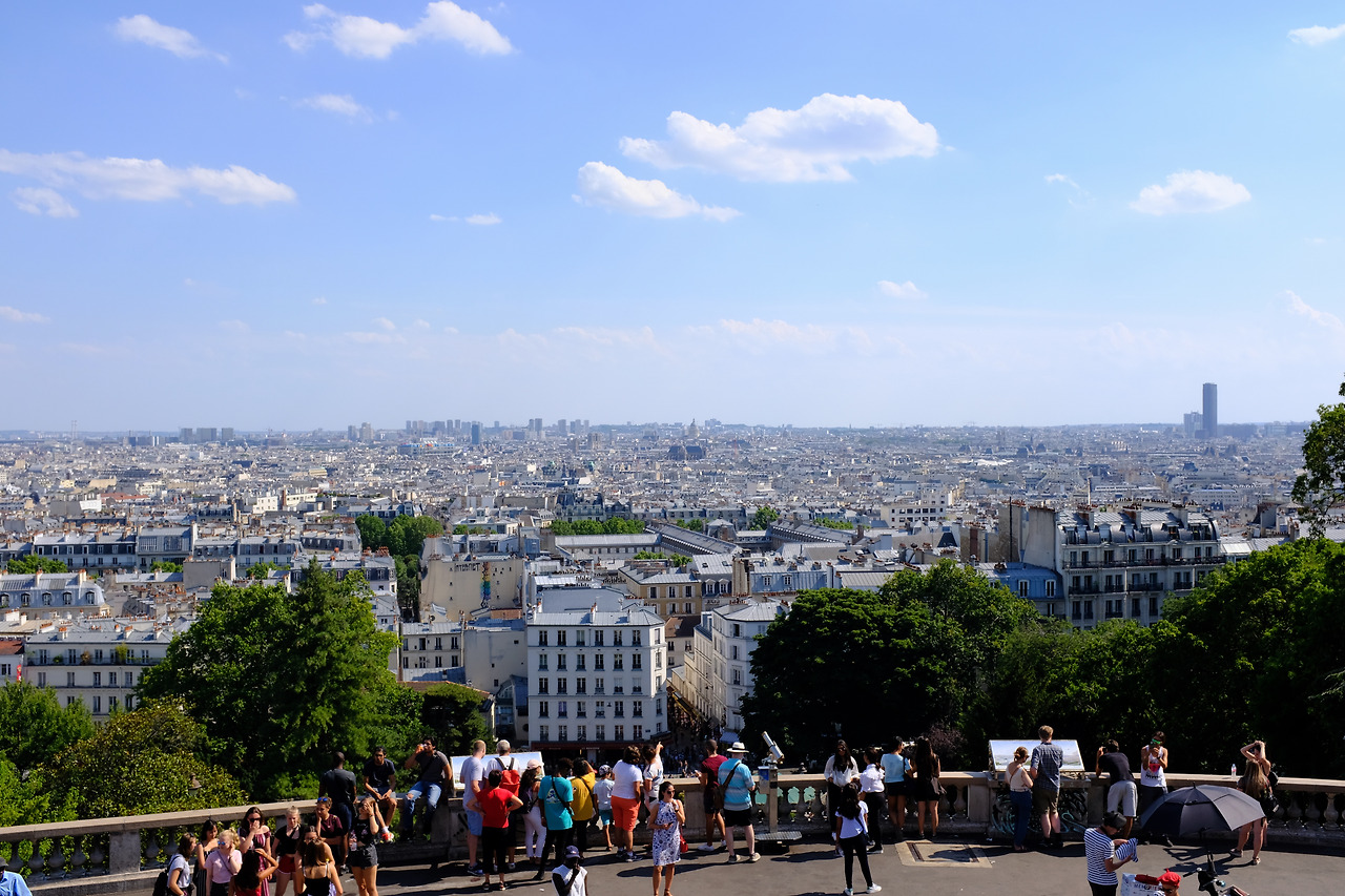 에펠탑 야경을 보러 온 여파가 다음날까지 남아있어서 이날은 평소보다 더 늦게 집에서 나왔다. 느릿느릿 준비를 해서 나온 후엔 언제나처럼 우리가 사랑하는 빵집에 들러서 바게뜨를 사고, 오늘의 목적지인 몽마르트르 언덕으로 향했다. 가는 길은 역시나 힘들었다. 엘리베이터 없음, 에어컨 없음, 사람 많음. 이 3종 세트를 모두 경험해야 갈 수 있는 곳. 게다가 토요일이라 단체 관광객이 그렇게 많았는지 파리 그 어느 곳보다 사람들로 북적댔다. 이럴 때 유모차가 가는데 길을 조금이라도 비켜주기를 기대하는 건 사치다. 대신 몽마르트르 언덕과 그 꼭대기의 사크레쾨르 대성당은 눈이 부시게 멋졌다. 참 애증의 도시다. 일정 내내 이렇게 병 주고 약주 고를 반복하다니. 날씨 역시 그랬다. 파리에 온 이후 이날이 가장 더웠다. 그래 봤자 30도 정도라 서울의 여름에 비하면 아무것도 아니긴 하지만 햇빛이 워낙 뜨거우니 금방 지치는 날씨였다. 반면에 하늘은 그야말로 눈이 부시게 파랬다. 유럽 여행을 와서 날씨가 계속 좋았지만 이날이 절정이었다. 멈춰 서서 보기엔 참 아름답고 기분이 좋은데 이동을 하면 힘들어지는 묘한 상황이 계속됐다.