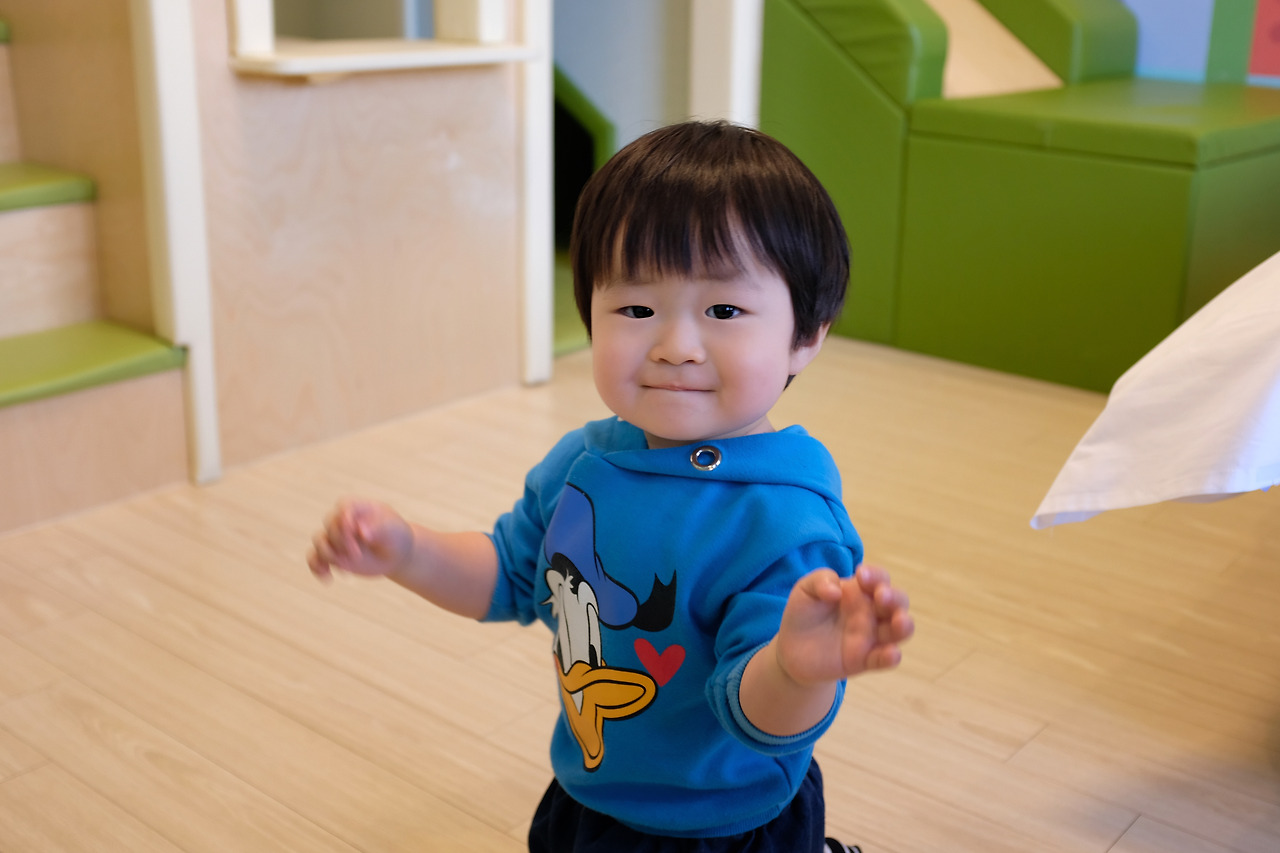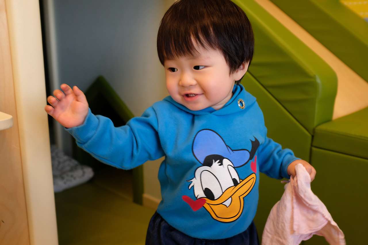 원영이는 이제 막 걷기 시작했다. 17개월을 지나 18개월이 다 돼서야 비로소 걷는다. 누나와 마찬가지로 모든 발달이 느린 아이. 심지어 걷는 것은 누나보다도 조금 더 느렸고, 그마저도 뒤뚱뒤뚱 넘어질 듯 말 듯 걷는다. 그런 녀석이 콩순이 룸에 와서는 정말 열심히 돌아다니면서 놀았다. 미끄럼틀도 못 타면서 미끄럼틀에 올라가고, 그 아래 구멍에도 계속해서 들어가고. 뭐가 그렇게 신났는지 자주 웃기도 하고. 기특한 것.