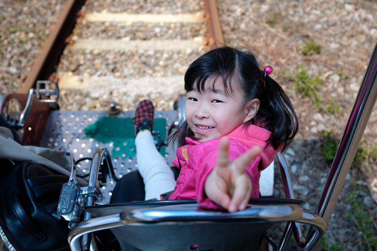 양평 레일바이크는 평소에 사람이 많은 걸로 알고 있는데, 우리가 갔을 때는 아무도 없었다. 정말 그 시간대에 우리 가족 한 팀만 탔다. 아무도 없으니 마스크고 뭐고 쓸 일도 없고 좋긴 하더라. 주변 풍경도 멋있고. 무엇보다 수인이랑 원영이가 한껏 신나서 그 시간을 즐겼으니 그걸로 된 거다. 물론 나 혼자서 거의 다 돌리느라 아빠는 꽤 힘들었지만 그 정도 고생쯤이야. 기분이 좋으니 금방 잊히더라.