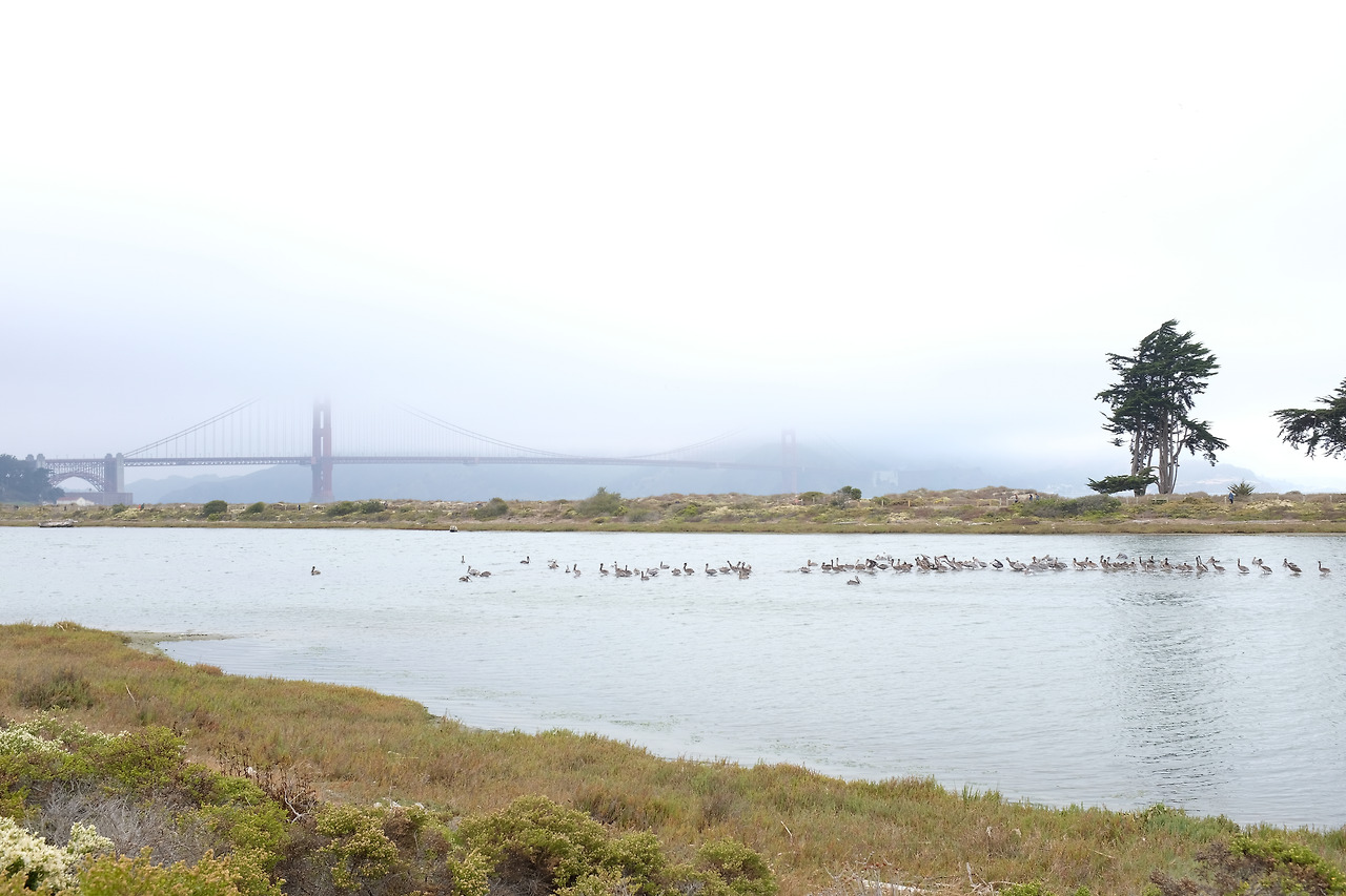 금문교 주변에는 전망대들이 여러 군데에 잘 되어 있어서 잠깐 자전거를 멈추고 구경하며 사진을 찍기에 좋다. 여기저기 주변을 둘러보며 한참 동안이나 이 순간을 만끽했다. 특히 다리 상부가 구름에 가려서 더 거대한 느낌을 주고 있었다. 다리까지 가는 길도, 다리에서도 자전거가 지나는 길이 잘 정비되어 있기에 아무 어려움 없이 편하게 랜드마크를 즐길 수 있다. 여기를 걷는 사람이 얼마나 되겠는가. 때문에 이곳은 완벽하게 자전거를 위한 길이다. 자전거를 타고 달리는 느낌과 자동차를 타고 달리는 느낌은 확실히 다르다. 자동차는 그저 쓱 지나간다는 느낌이라면, 자전거는 그 안에 동화되어서 내가 일부가 되는 그런 느낌이랄까? 늘 사진으로만 보던 랜드마크의 일부분이 된다는 느낌에 신기하기도 하고, 살짝 흥분되기도 했다.