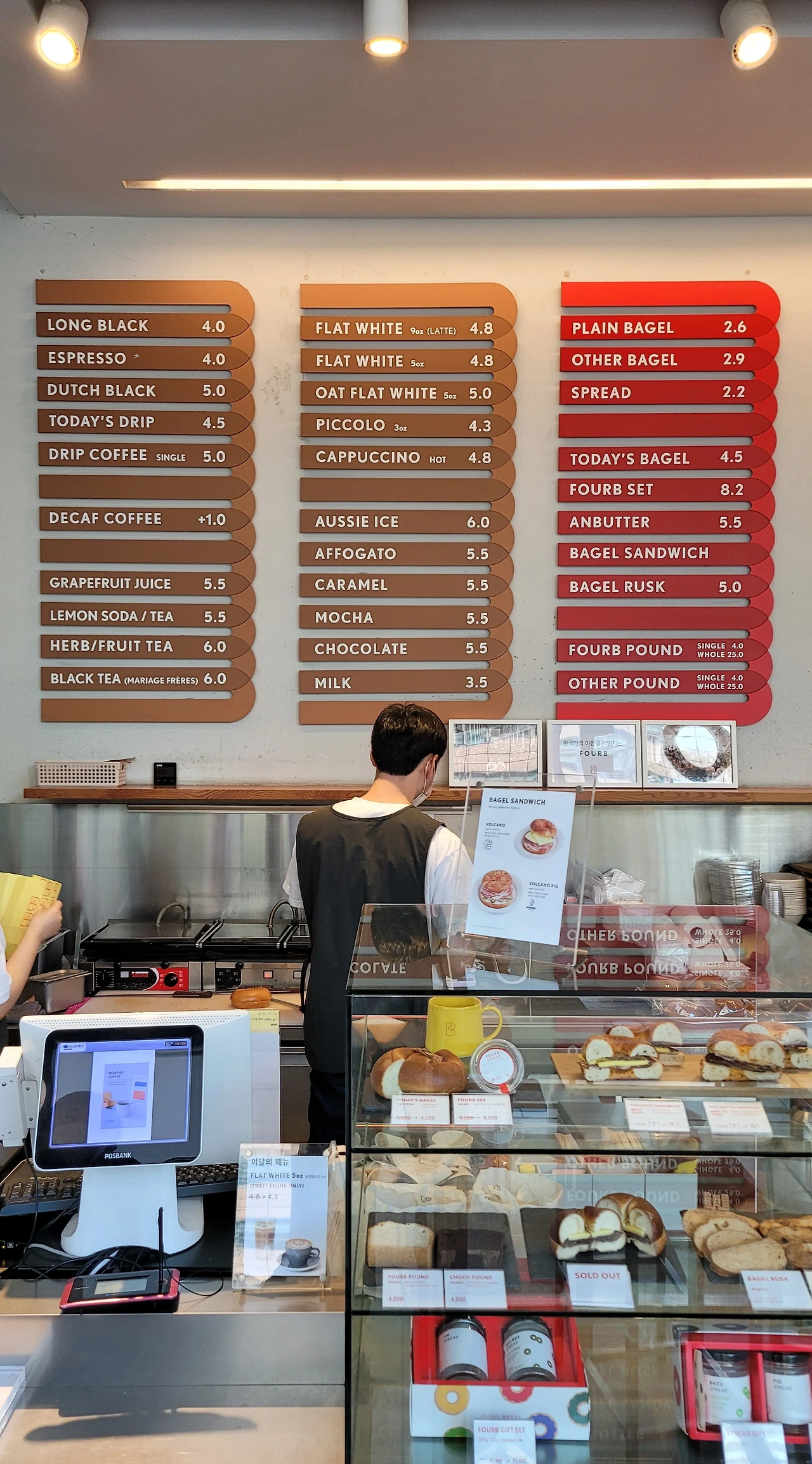 I went to a cafe early in the morning to buy a bagel and saw a strange sight. There was no Korean character on the menu. Even though it is a cafe that targets young people who want to buy bagels, I thought that,