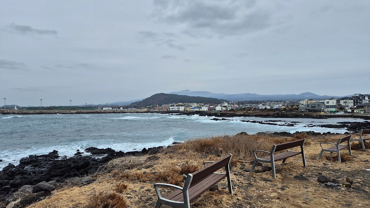 바람이 엄청나게 강하게 분다. 파도가 계속해서 몰려온다. 머리는 쉼 없이 흩날리지만 그게 또 상쾌하기도 하고 멍하기도 하고 아무튼 기분이 좋아서 한참 동안이나 바라보고 있는다. 마침 하늘도 적당히 흐려서 더 스산한 느낌이다. 주변엔 아무도 없다. 윙윙거리는 바람 소리와 철썩거리는 파도 소리만 있을 뿐. 여기저기서 들을 수 있는 인위적인 자연의 소리가 아니라 진짜 자연의 소리다. 눈으로 보고 귀로도 듣고 하니까 정말 실감 나면서도 춥다. 조금 변태 같지만 이런 황량한 겨울 바다가 너무나도 좋다.