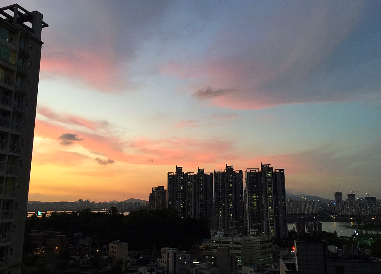 한강 위로 펼쳐진 눈부신 하늘, 이런걸 볼 수 있다는 건 정말 행운이야. 말 그대로 마법같은 순간이다.