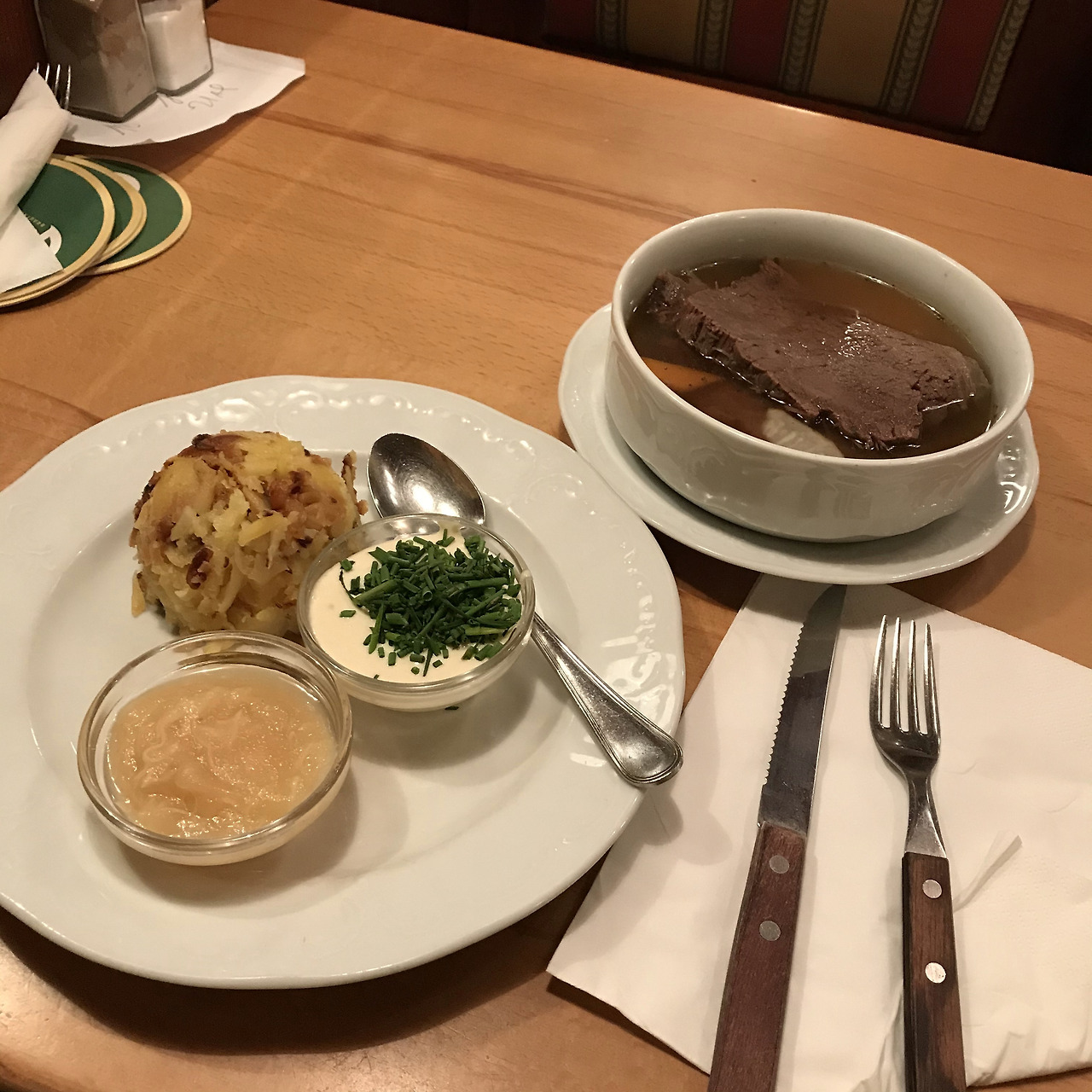 비엔나 가이드님이 추천해 준 요리인 '타펠스피츠'를 먹으러 왔다. 처음 먹어보는 요리였는데 이거 진짜 진짜 맛있다! 고기는 갈비탕 고기 같은데, 꽤 두께가 있고 엄청 연하고 장조림 찢기듯이 찢긴다. 국물은 약간 연한 스튜 맛이고, 하나도 안 짜고 간도 적절하고 무엇보다 고기 찍어먹는 소스가 정말 맛있었다. 겨자+유자 소스랑 마요네스 소스인데, 고기는 겨자 소스와 같이 먹고, 감자는 마요네스 소스랑 먹으니 환상적이었다. 식당에서 음식 기다리는 동안 할머니랑 영상통화를 했다. 할아버지 제사 때문에 할머니가 집에 오신 덕분에 영상통화를 할 수 있었다. 코로나 때문에 할머니 걱정이 어마어마하다. 음식 먹으면서 할머니 생각이 많이 났다. 할머니도 분명 좋아하시고 잘 드실 것 같아서, 나만 이렇게 맛있게 먹는 게 아쉬웠다.