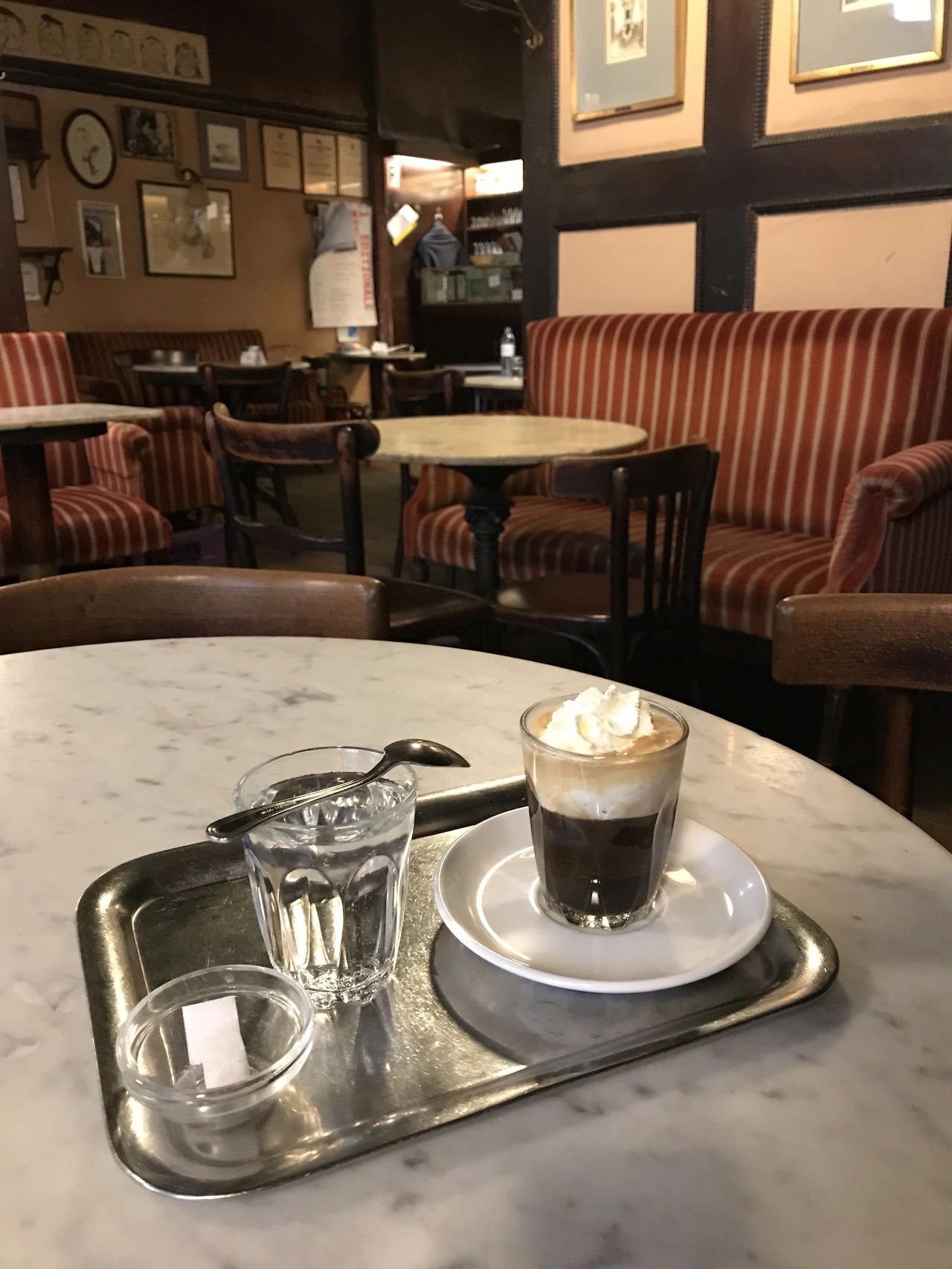 점심 먹으러 가는 길, 가려던 식당 바로 옆에 '하벨카 커피'가 있었다! 책에서 본 곳이라 망설임 없이 들어갔다. 세월이 느껴지는 공간이 참 근사하고 멋있었다. 흰머리가 지긋한 웨이터는 투박하지만 친절한 츤데레 스타일이었다. 한 곳에서 신문을 읽으며 커피를 마시는 노신사가 눈에 들어왔다. 여기 터줏대감인 것 같다. 나 빼고 모두 여기가 아주 익숙한 곳인 것처럼 보였다. 커피 맛도 훌륭하고, 왠지 센트럴보다 더 좋았다. 여기서는 오래된 카페에는 다들 나무 철을 한 신문을 비치해놓는데, 스타벅스에도 신문이 있을지 궁금해졌다. (나중에 가보려고 했는데 까먹었다.)