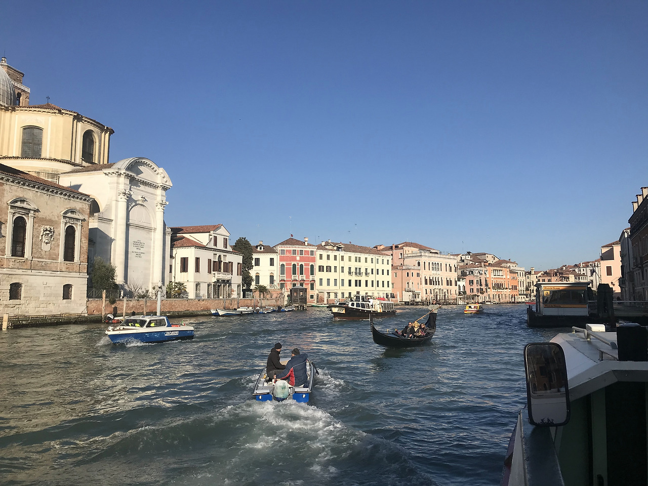 오후 2시, 이탈리아 베니스에 도착했다. 본섬에 가기 위해 공항버스를 탔는데 버스에 동양인은 나뿐이었다. 낯선 느낌, 그리고 버스에서 물씬 느껴지는 외국 냄새! 긴장되고 설렜다. 본섬에 도착해서 숙소로 가기 위하여 수상 버스를 탔다. 4년 전에 친구와 왔을 때는 수상버스를 한 번도 안 타고 도보로만 이동했었는데, 이번에는 교통권을 샀으니 수상 버스를 많이 타봐야지. 수상 버스 뱃머리 쪽 야외 자리에 서서 베니스의 대운하를 가로지르며 가니, 이제야 베니스에 왔다는 것이 실감이 난다. 무거운 캐리어를 잠시 내려두고, 공항에서 숙소 가는 길과 교통권 구매 방법에서 해방되니 이제야 아름다운 베니스의 풍경이 한눈에 들어오는 것이다. 파란 하늘과 대운하를 사이에 두고 늘어선 오래된 수상 주택들, 그 운하를 지금 내가 시원하게 가로질러가고 있다. 이렇게 금방 다시 올 줄 몰랐는데. 정말이지 내가 혼자 베니스에 왔구나!