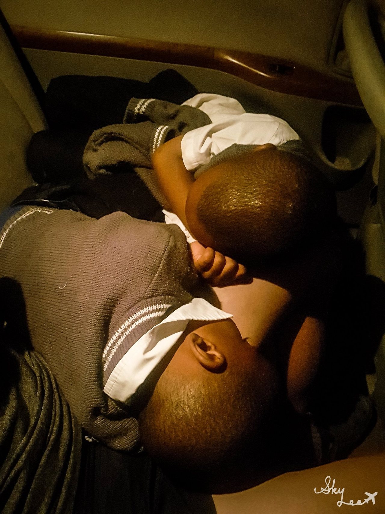 전용 기사의 차 안에서 잠든 아이들