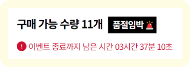마감까지 시간이 많이 남지 않았다는 촉박함을 이용하여 구매를 유도하고 있다. 하지만 며칠 뒤, 해당 프로모션은 동일하게 진행되었고, 이런 거짓 시간제한을 통해 구매를 유도하는 다크패턴이라 볼 수 있다.