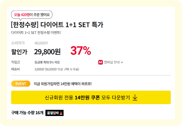 '오늘 420명이 주문 했어요'라는 문구를 통해 해당 제품이 매우 인기 있다는 인식을 가지게 만든다. 하지만 이 방식은 사용자의 군중심리를 이용하여 더 빨리 구매결정을 내리도록 유도하는 사례이다.