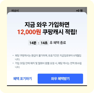 해당 화면은 국내 이커머스인 Coupang의 멤버십 가입 유도 앱 화면이다.