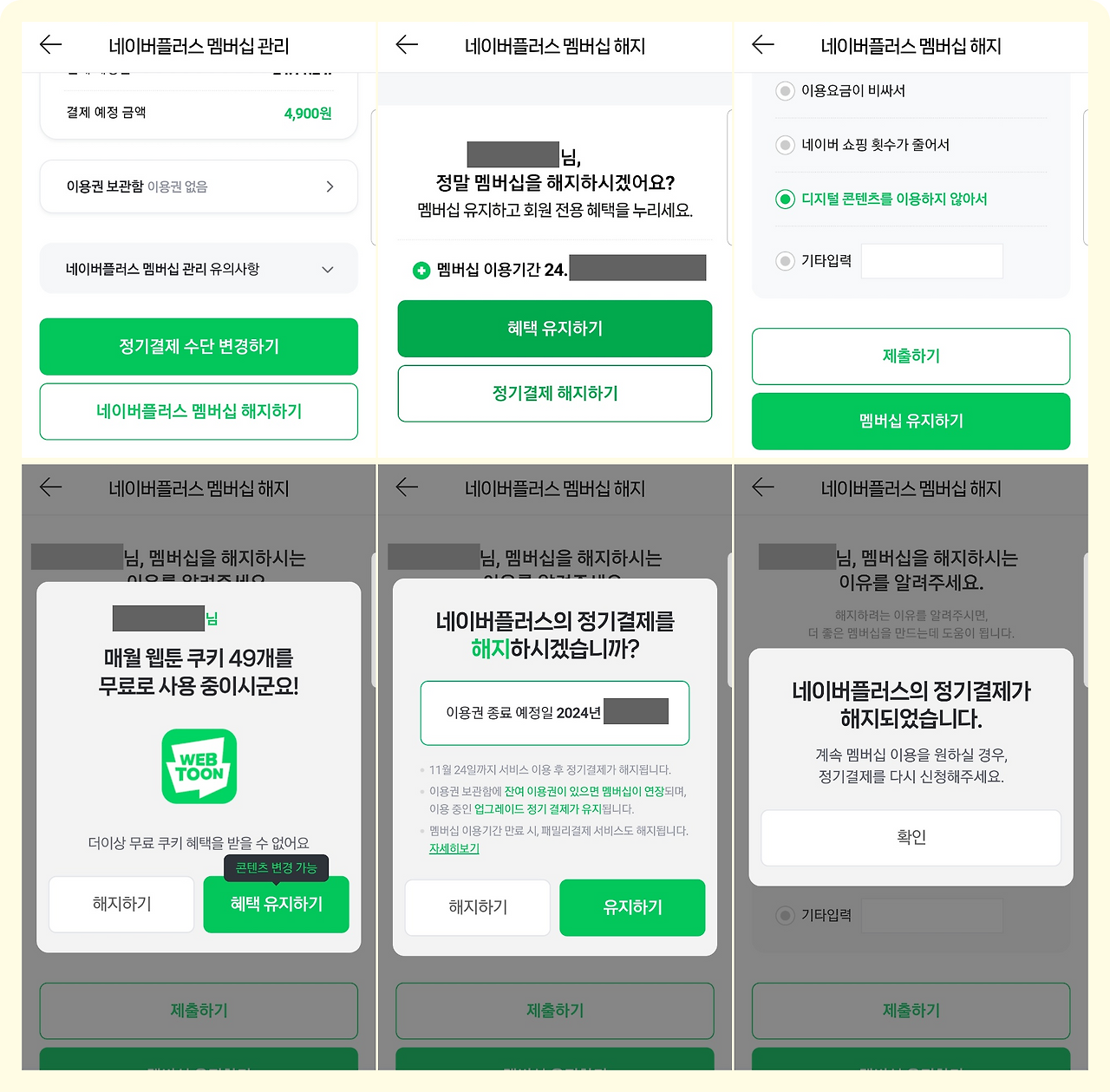 해당 화면은 국내 포털사이트인 Naver의 멤버십 해지 앱 화면이다.