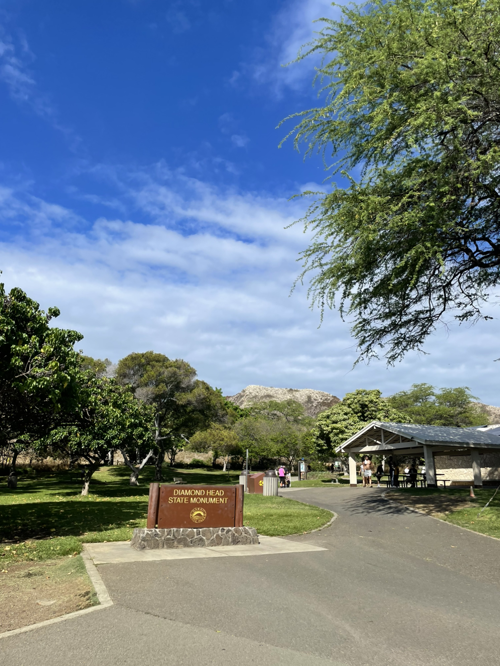 KCC파머스마켓에서 다이아몬드헤드 까지는 비교적 가깝다. 반짝이는 바다 옆 길를 따라 입구까지 걸어갔다. 드디어 입구가 보이고, 햇빛은 점점 뜨거워지고, 이 때부터 조금 지치기 시작. 그래도 여기까진 시작에 불과했으니..