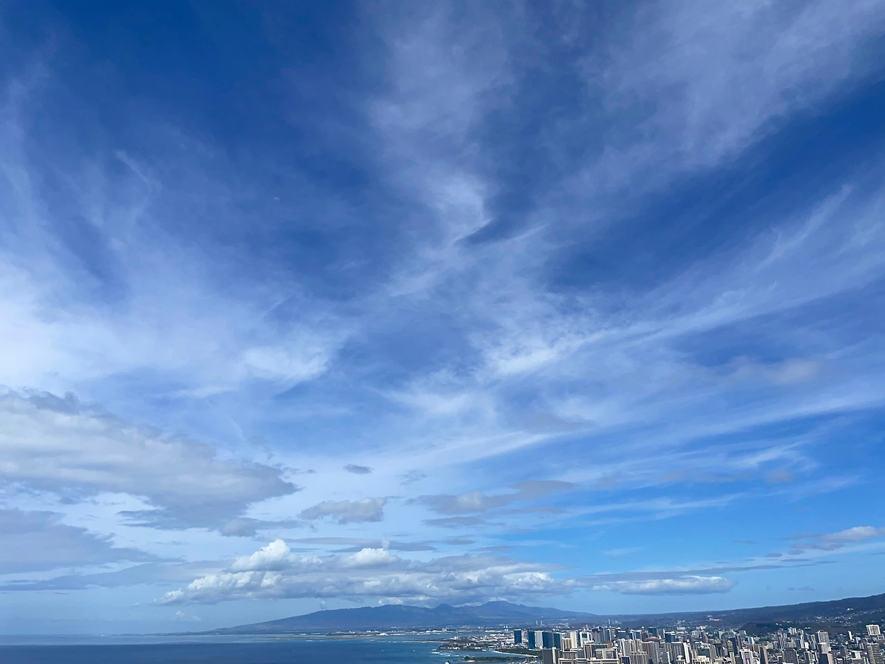 그렇게 힘들게 올라가서 바라본 눈부시게 아름다운 풍경은 가슴속에만 깊이 남겨두고 왔다. 반짝반짝 빛나는 바다와 와이키키 해변이 한눈에 들어오는 그림같은 풍경.. 이었지만 실은 너무 강한 햇빛에 사진을 어떻게 찍고 있는지 보이지도 않았고 전망대 위에 사람도 너무 많아 복잡했던..