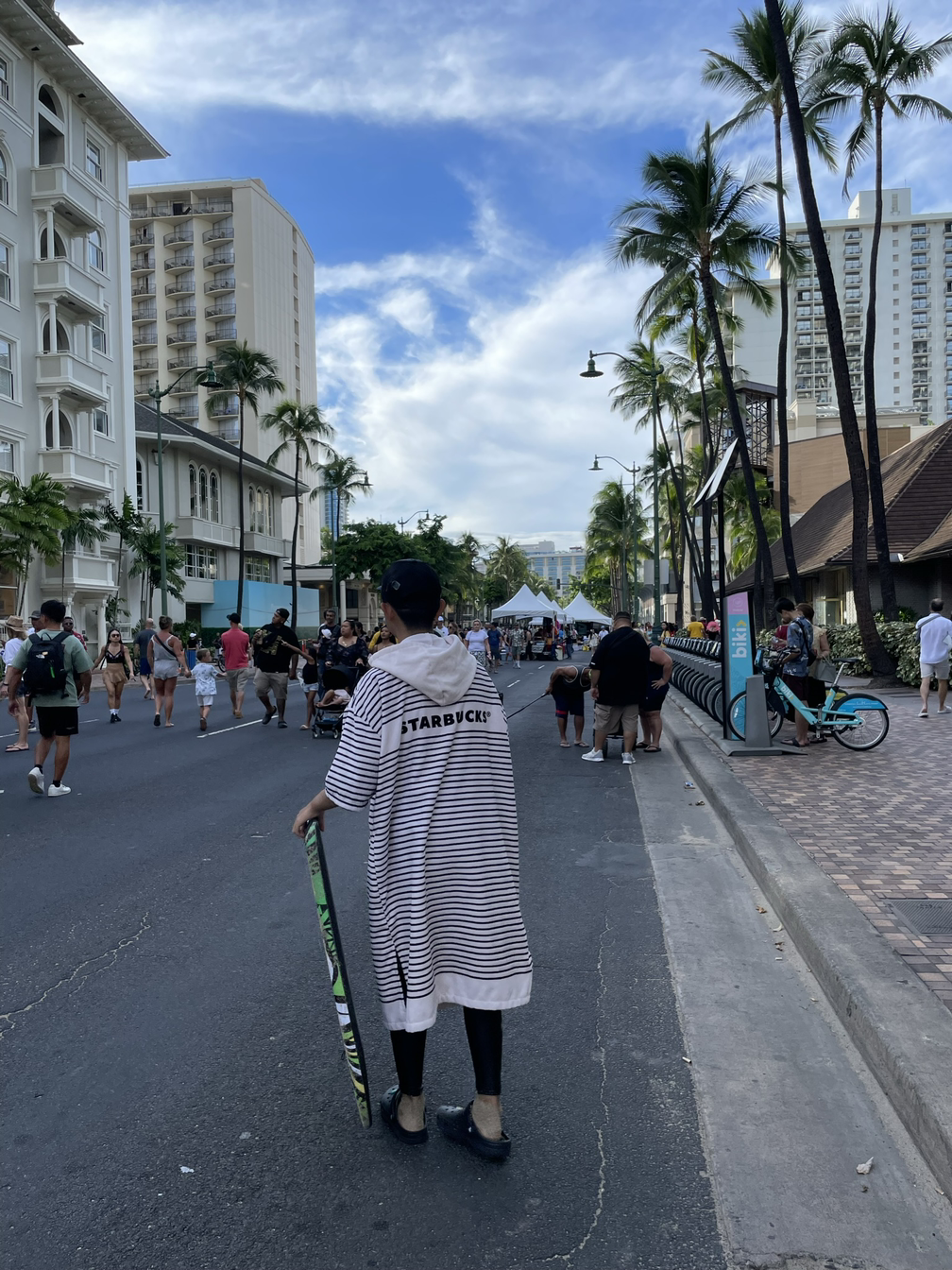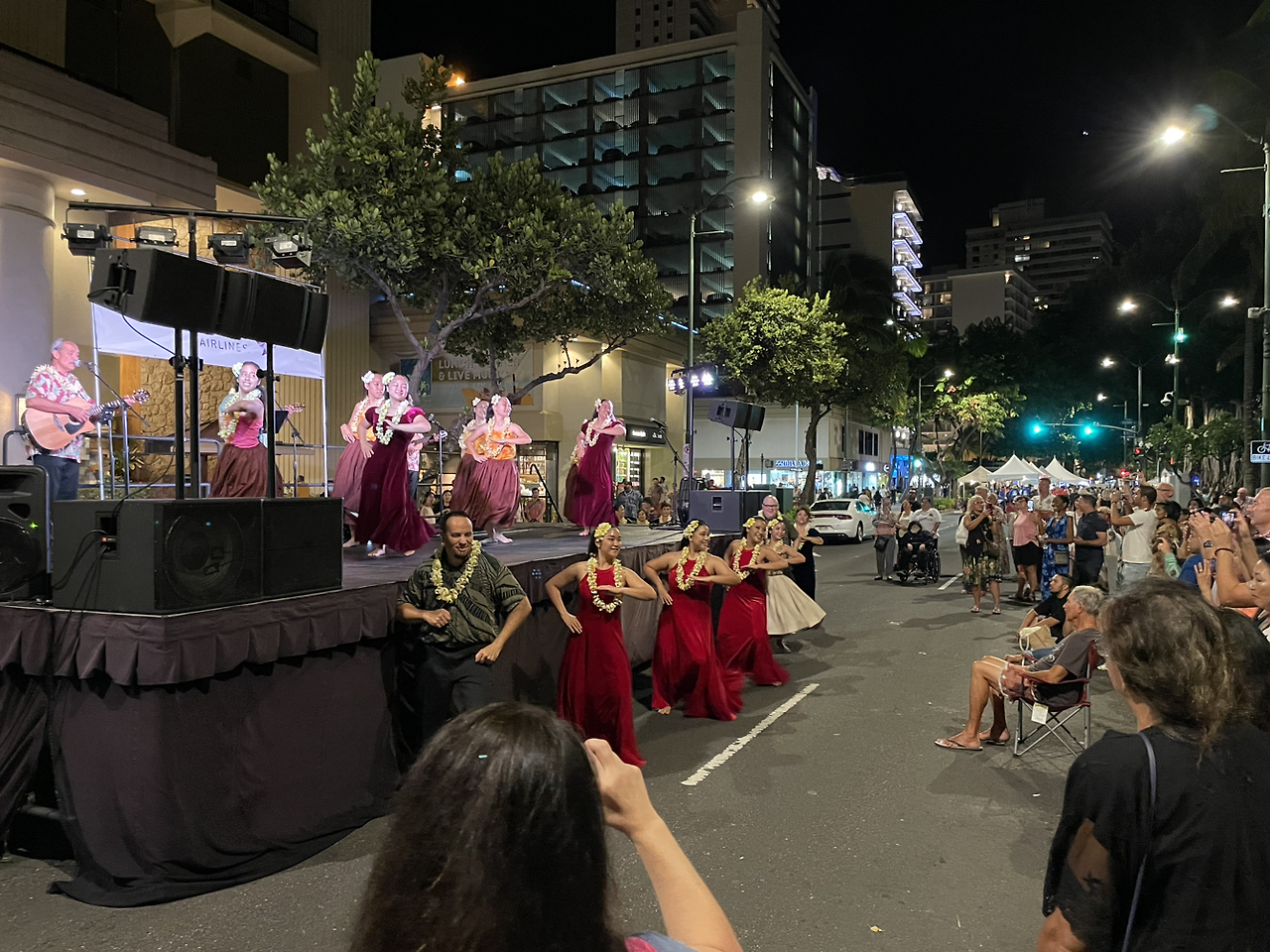 식사를 마치고 밖으로 나오니 공연이 한창이다. 아, 여기는 진짜 코로나가 끝났구나. (22년 9월이기에, 거리에 사람이 밀집된 것은 상상할 수 없으며, 마스크 벗는 것조차 어색했던 시기였다.) 전혀 다른 세상에 온 것 처럼(다른 세상이 맞기는 하지) 낯설다. 이렇게 많은 사람들이 길거리 공연을 자유롭게 구경하던 것이 대체 언제적 이던가. 오랜만에 만난 세상은 여행의 즐거움을 한껏 더해준다. 신나는 와이키키의 토요일 밤.