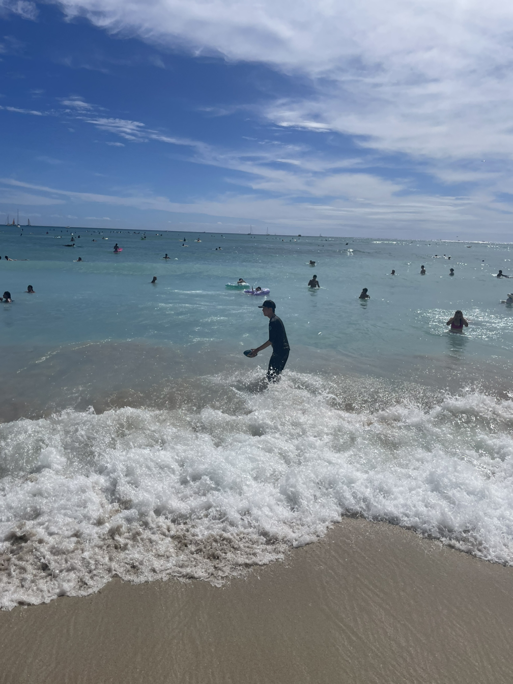 반짝반짝 너무나 아름다운 와이키키. 그런데 생각했던것 보다는 파도가 꽤 세다. 준비해갔던 튜브, 특히 어린이 튜브는 어림 없다. ABC 마트 밖에 쌓여있는 무식하게 커다란 튜브가 왜 필요한지, 바다에 한 번 들어가보고 바로 깨달았다. 무조건 그 튜브를 사야한다. 와이키키의 파도를 신나게 즐기려면.