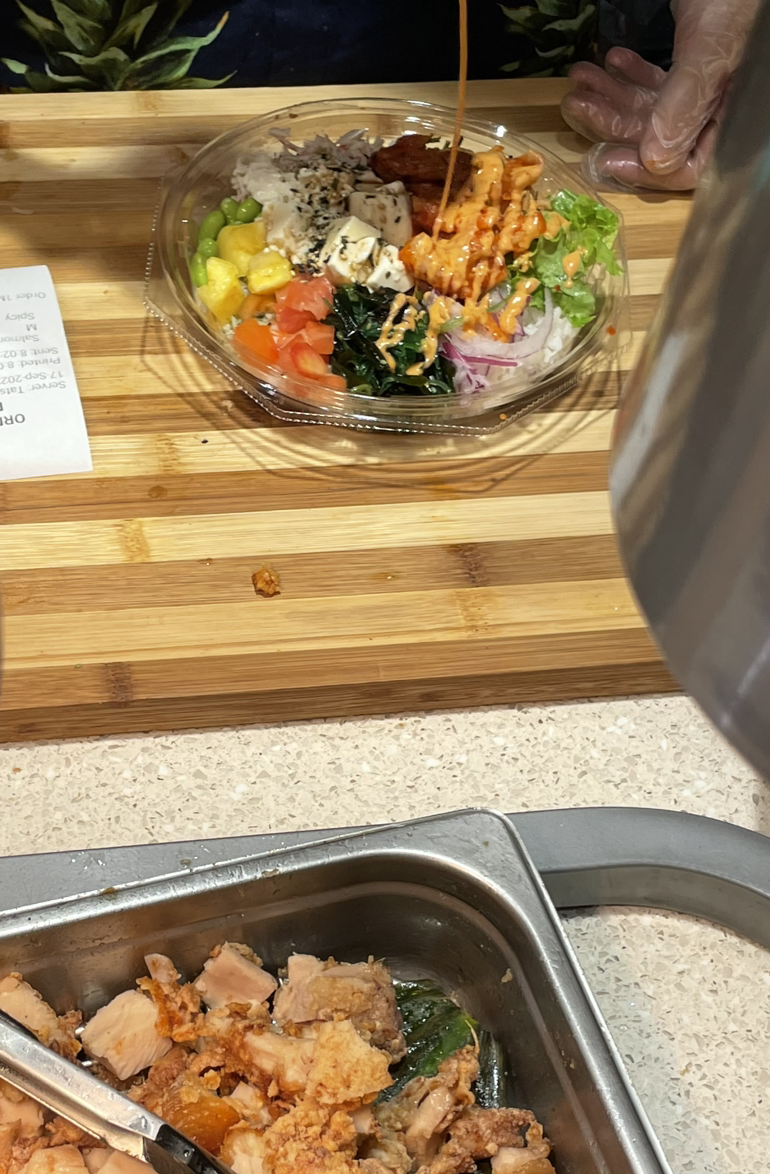 포케의 다양한 형태 중 내가 먹은 음식은 포케볼이다. 접시 한가운데 수북이 담긴 밥 덕분에 한끼 식사가 되는 음식이다. 이것은 미국 전역에서 판매하는 포케 볼과는 핵심적인 차이가 있는데 첫째, 하와이의 포케는 신선한 해산물에 풍미가 생기도록 단 15분이라도 드레싱에 재워 둔다. 둘째, 퀴노아, 닭고기, 채썬 호박, 콜리플라워, 옥수수, 케일, 죽순, 망고, 오렌지 슬라이스, 아몬드 등 하와이 특유의 토핑이 더해진다는 점이다.