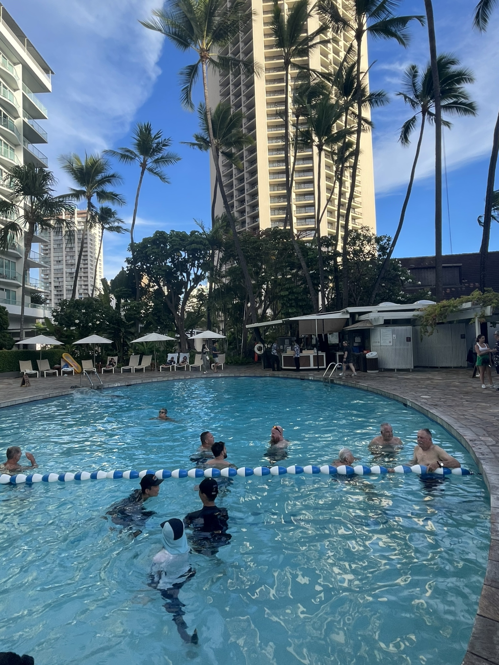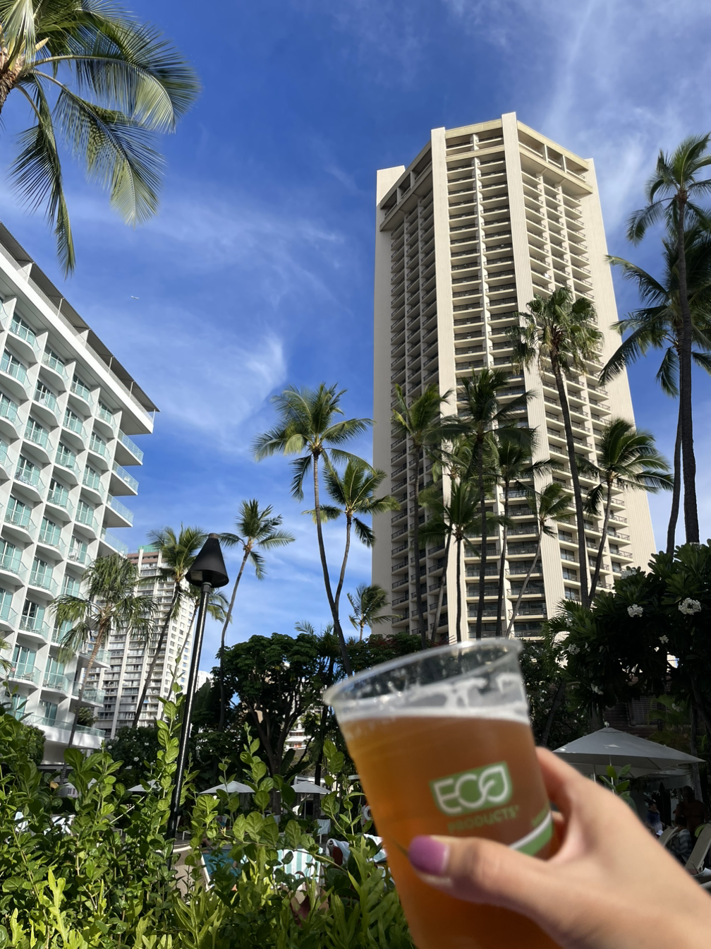 호텔 수영장은 작고 아담하고, 깊다. 여기서는 튜브를 사용할 수 없기에 구명조끼가 필요했다. 둘째군은 와이키키 해변보다 호텔 수영장을 훨씬 좋아했다. 그리고 빠질 수 없는 맥주 한 잔.