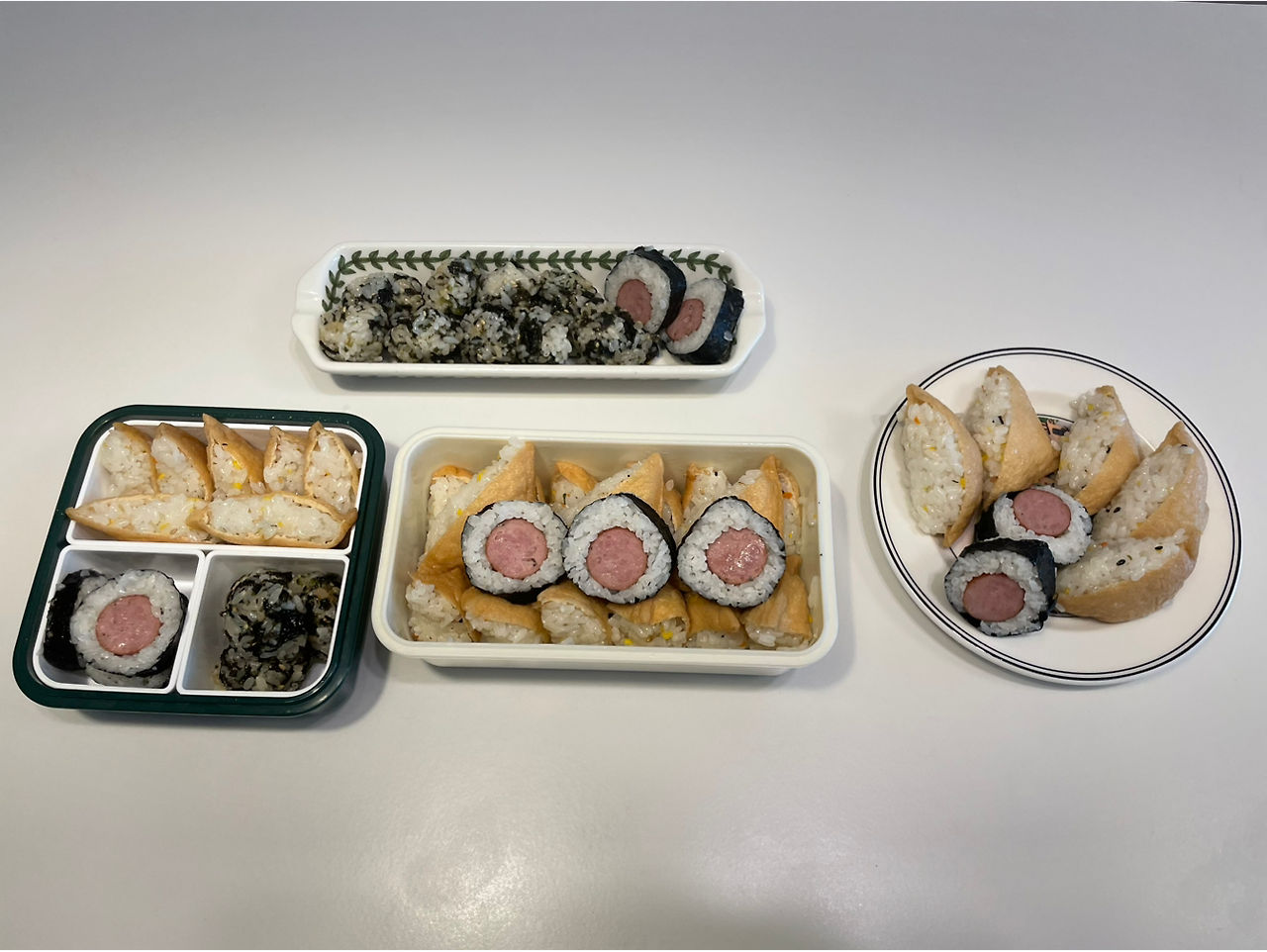 이것은 박물관 체험수업 가던 날, 급하게 도시락을 준비해야 해서 아침에 있는 재료들 급히 모아 만든 김밥, 유부초밥, 주먹밥 도시락. 형님들 한 분은 유부초밥을 좋아하고 한 분은 주먹밥을 좋아하니 도시락도 취향껏 따로 싸드림. 역시나 한 통씩 뚝딱 비우셨다.