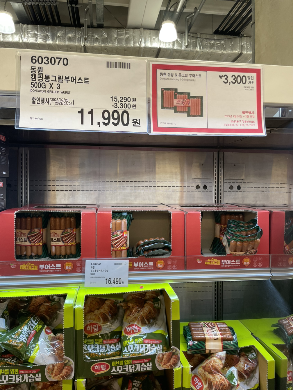 코스트코에서 내가 사랑하는 또 하나의 아이템, 캠핑 통그릴부어스트. 500그램짜리 세팩이 묶여 있는데 할인가 11,990원이니 한팩에 4천원정도 하는 사랑스러운 가격이다.