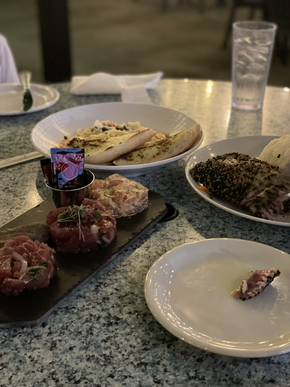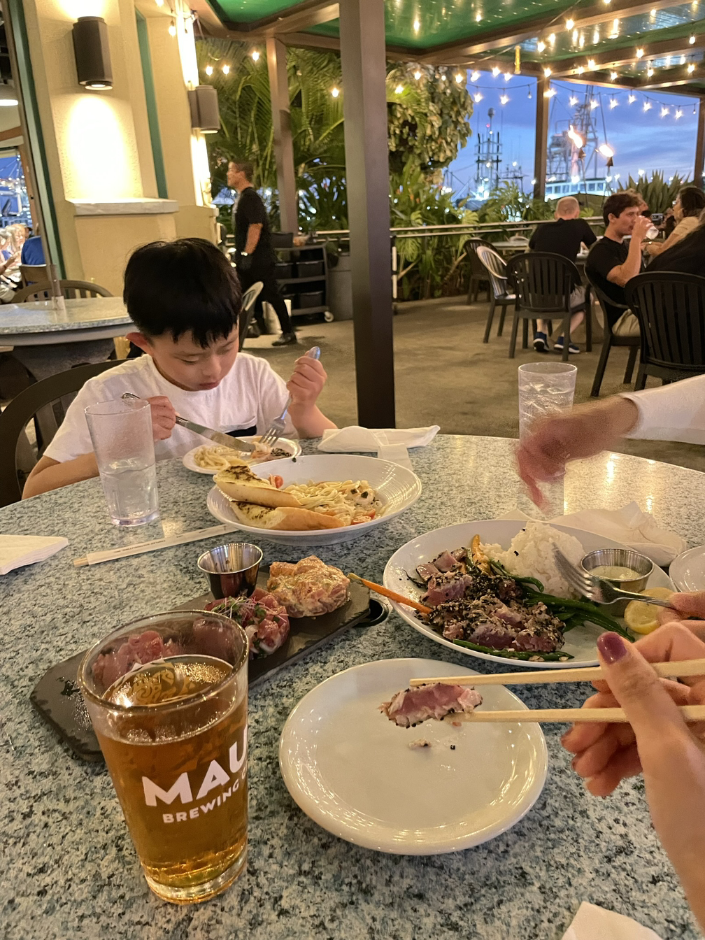 저녁을 먹기 위해 ‘니코스 피어38’로 갔다. 나중에 알았는데 백종원의 푸드파이터에 나왔던 곳이라고 한다. 저녁시간대라 대기를 해야 했는데 해질무렵 풍경이 너무 예뻐서 구경하다보니 금방 자리가 났다. 시원한 바다의 일몰을 바라보며 행복한 저녁 시간. 이 곳은 해산물 레스토랑인데 포케가 맛있다고 하여 아히 샘플러와 아히 스테이크를 주문했다. 싱싱한 생참치 요리의 매력.