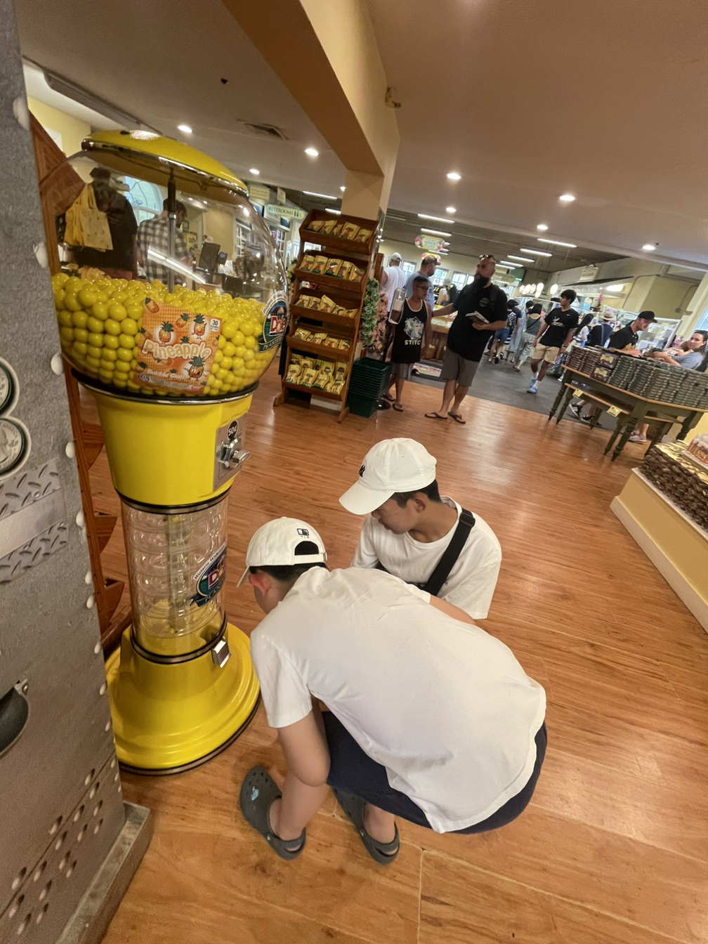 아이스크림이 맛있다기에 우리는 그저 파인애플 아이스크림이나 먹고 갈까 해서 방문해 보았다. 기념품 샵에 들어가자마자 저 동그란 풍선껌 기계?에 관심을 보이는 아가들. 저걸 꼭 먹어보고 싶다며. 아기자기한 기념품들이 많이 있었지만 우리는 아이스크림 줄로 냉큼 이동. 더운 날씨에 시원한 아이스크림을 먹으며 잠깐 휴식할 수 있어 좋았다.